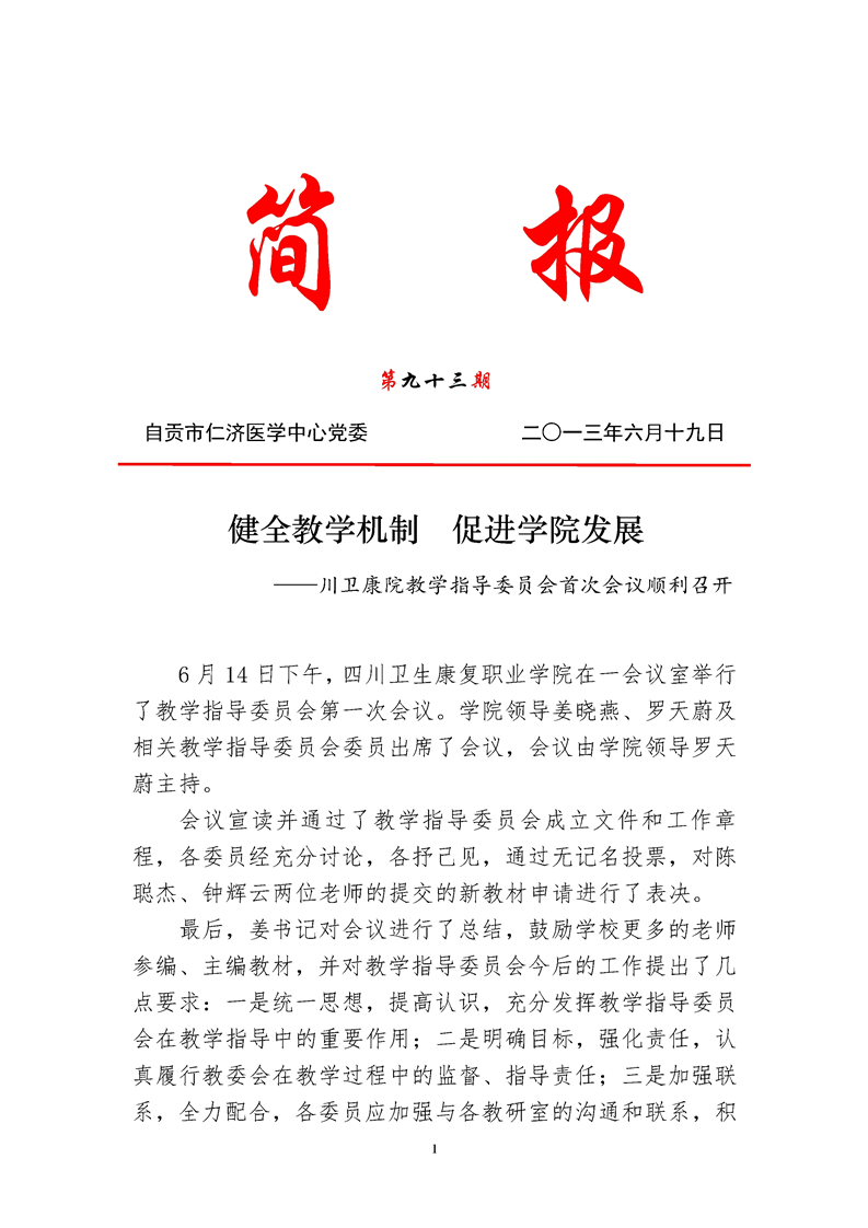 健全教学机制 促进学院发展——川卫康院教学指导委员会首次会议顺利召开