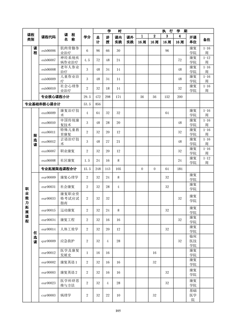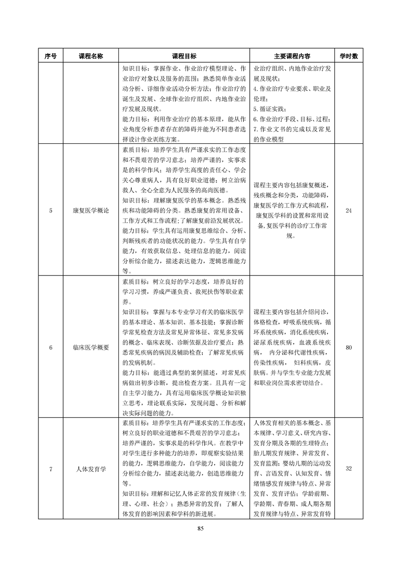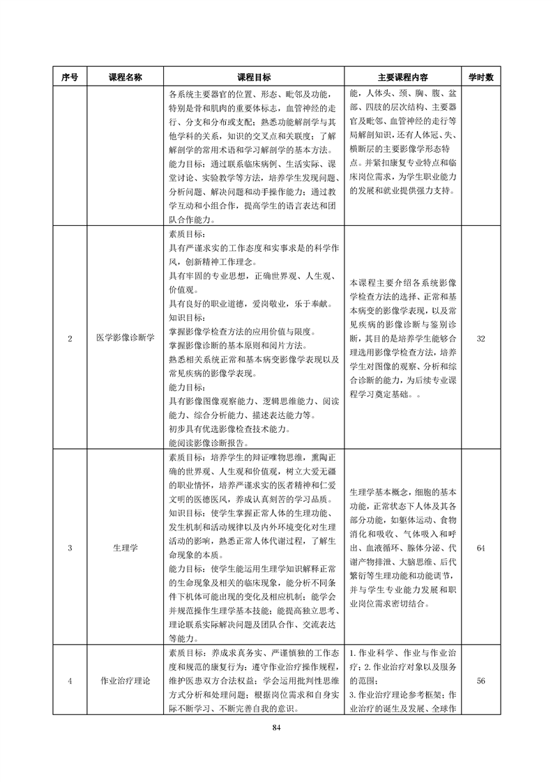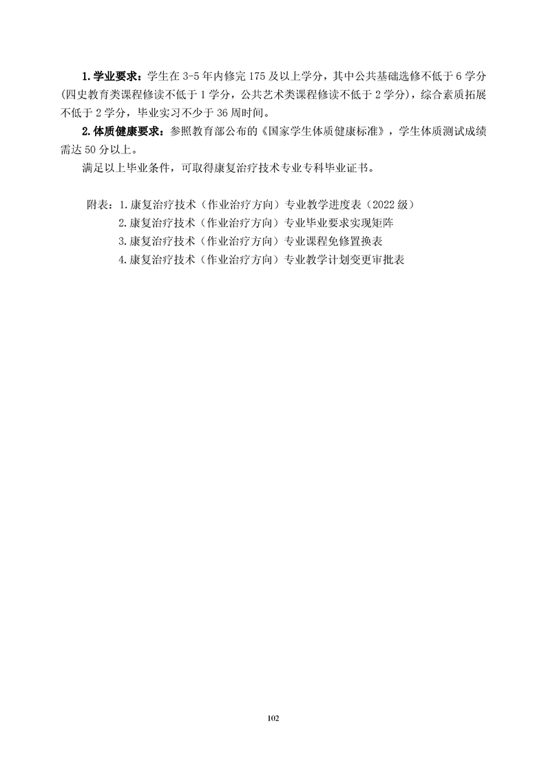 康复治疗技术(作业治疗方向)专业人才培养方案(2022级)