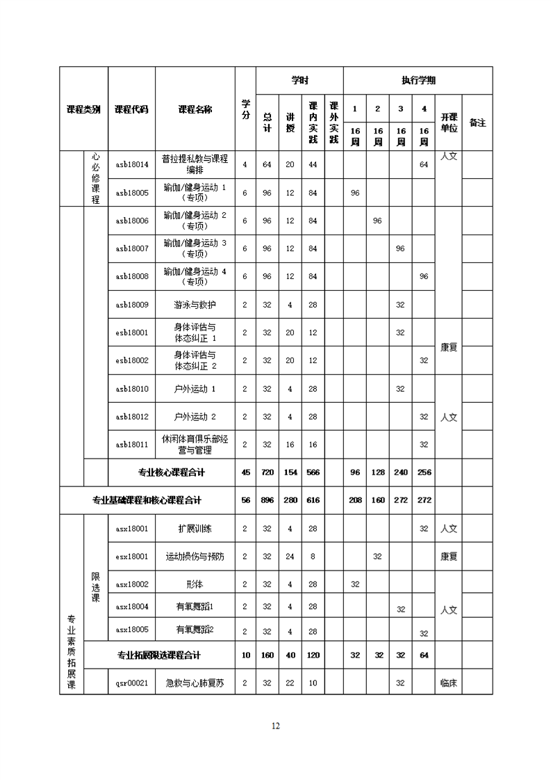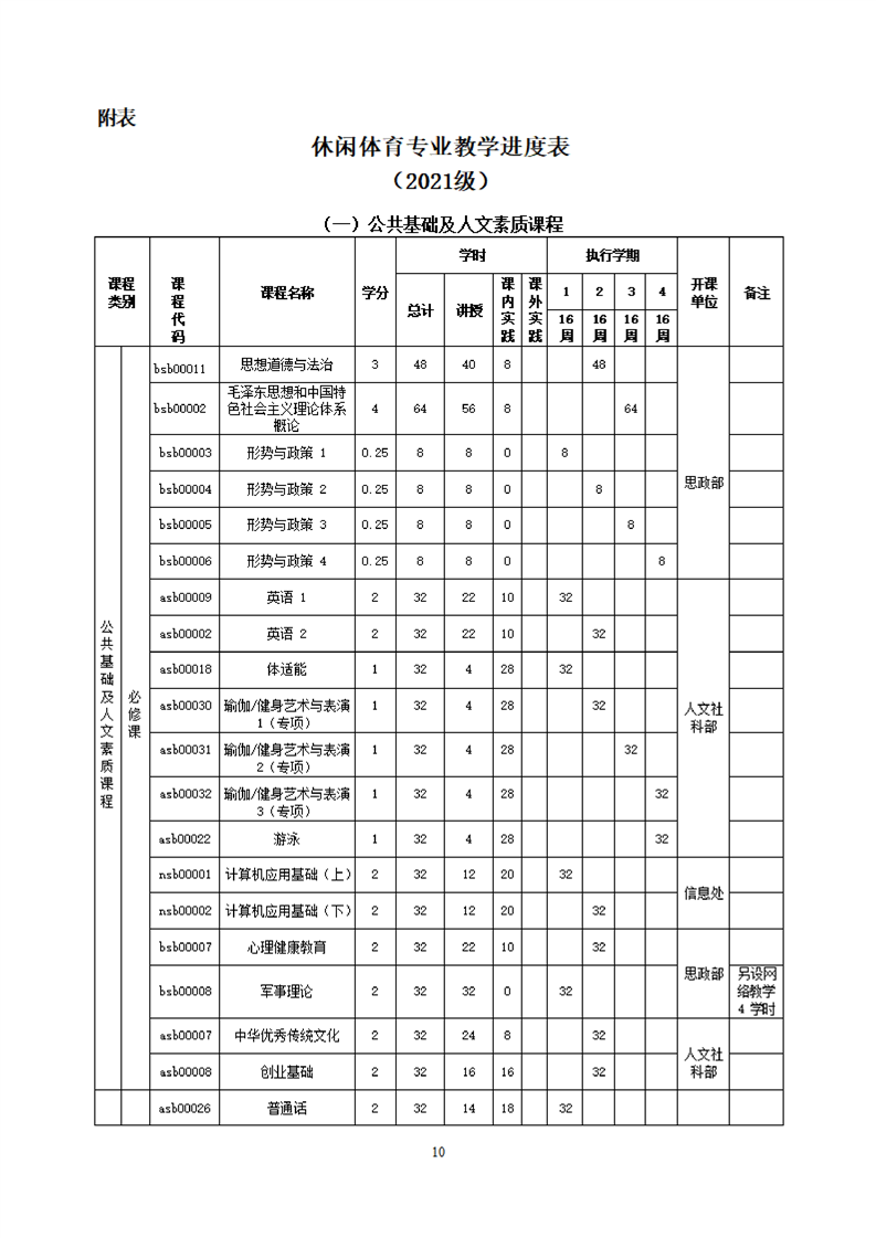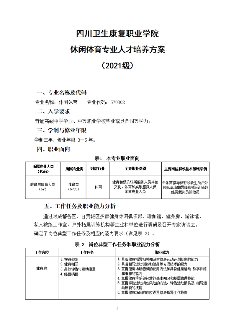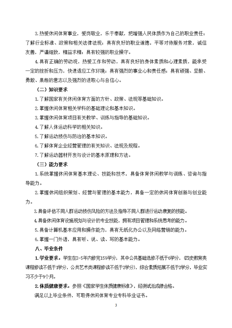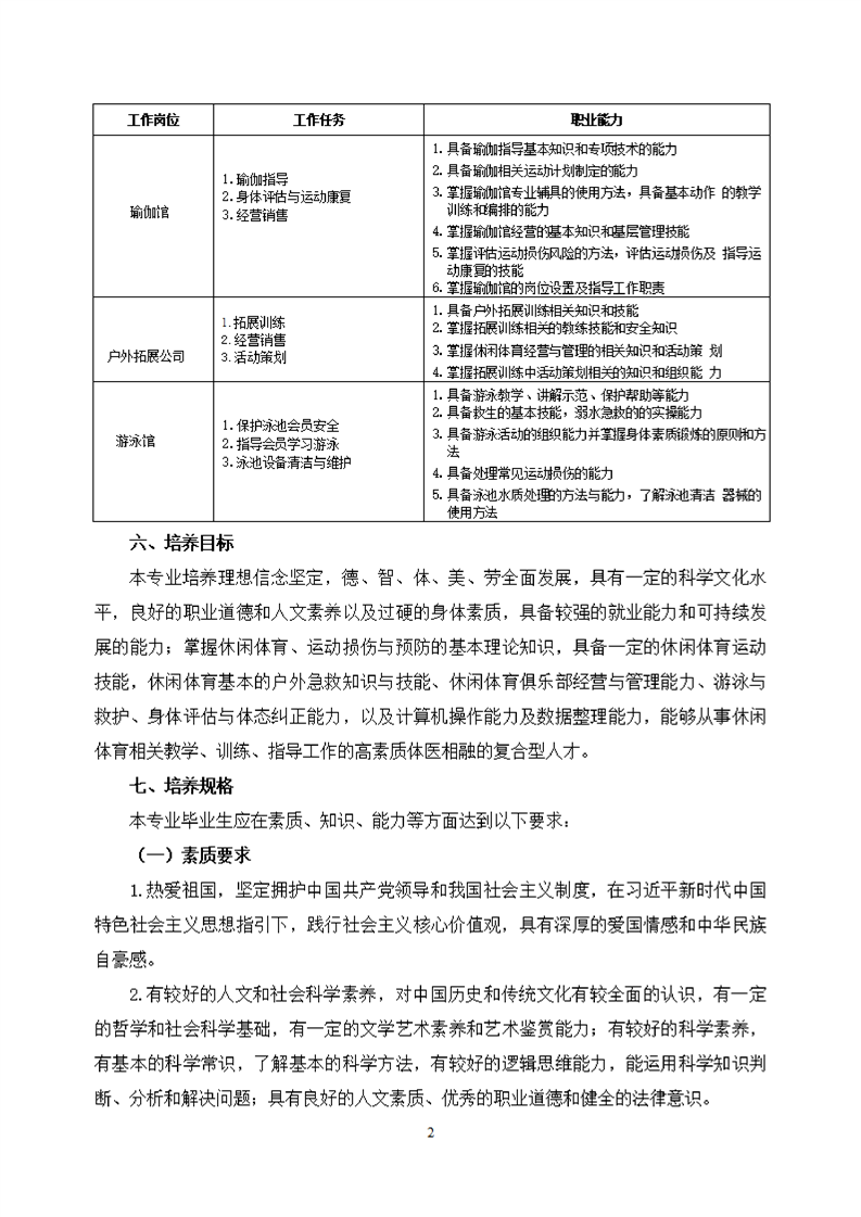 KY开元集团官网休闲体育专业人才培养方案(2021级)