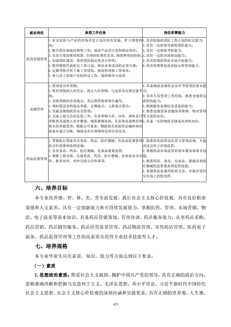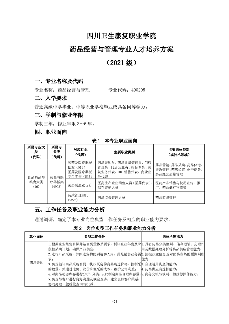 KY开元集团官网药品经营与管理专业人才培养方案(2021级)