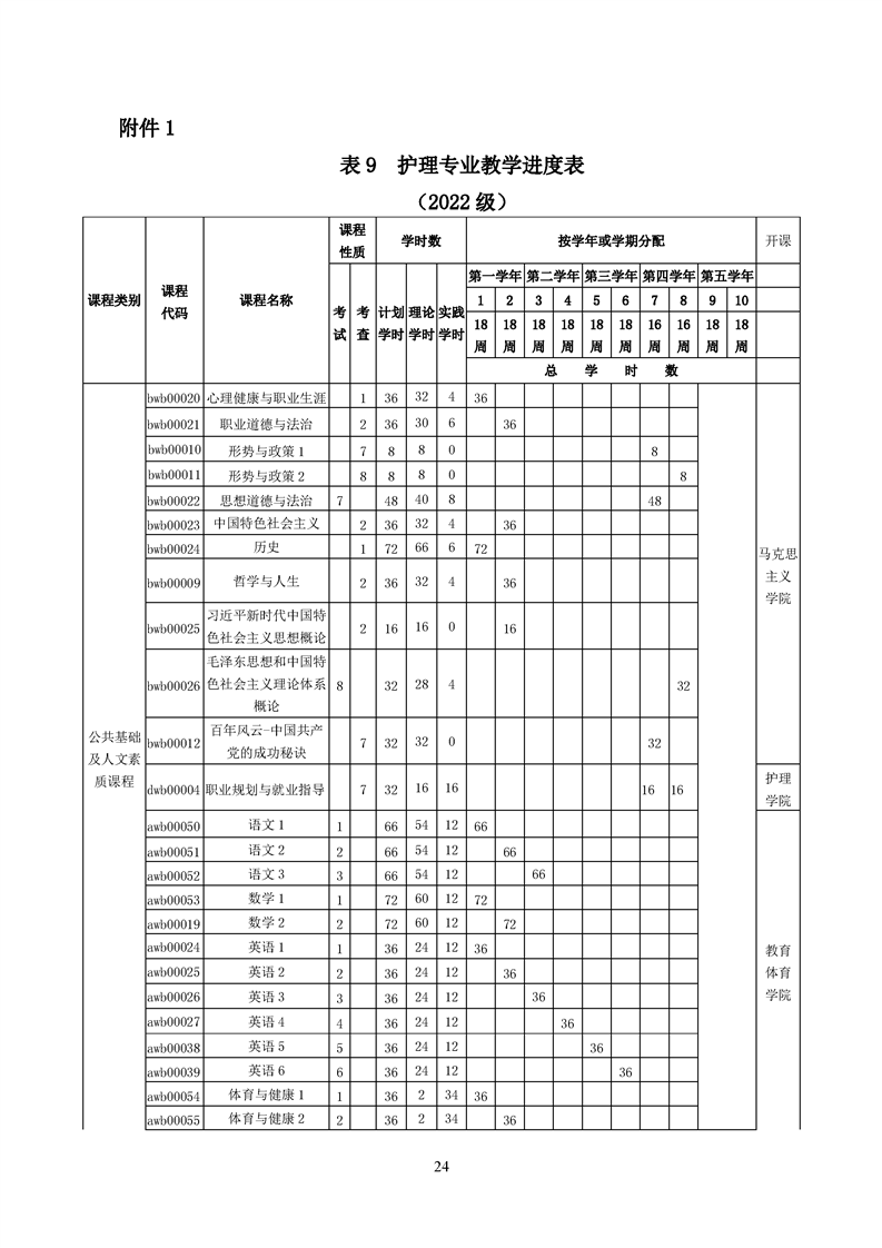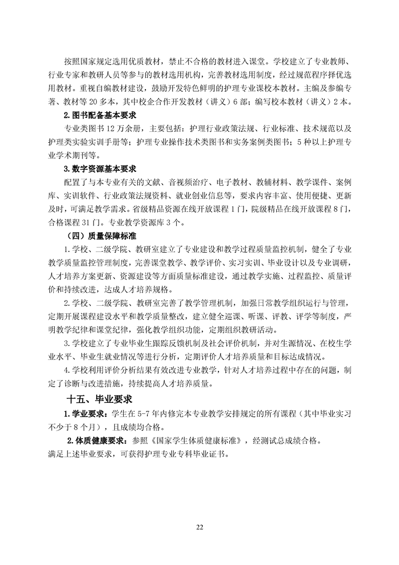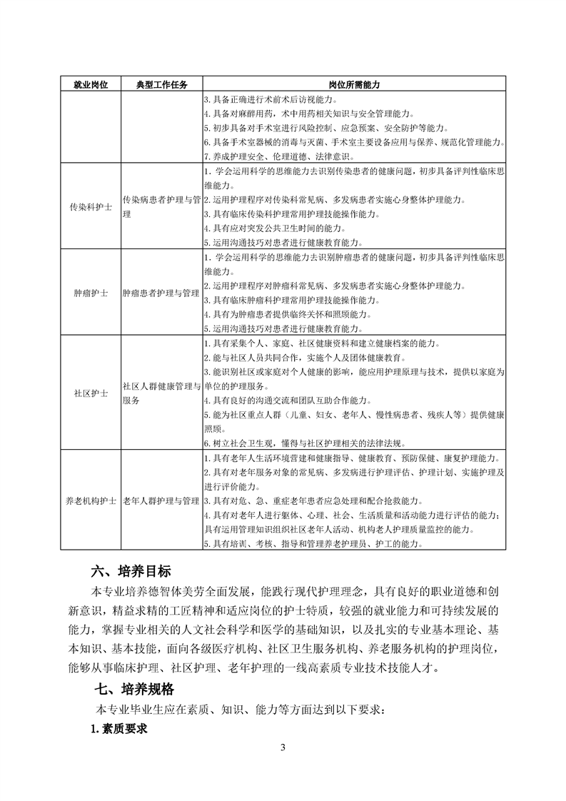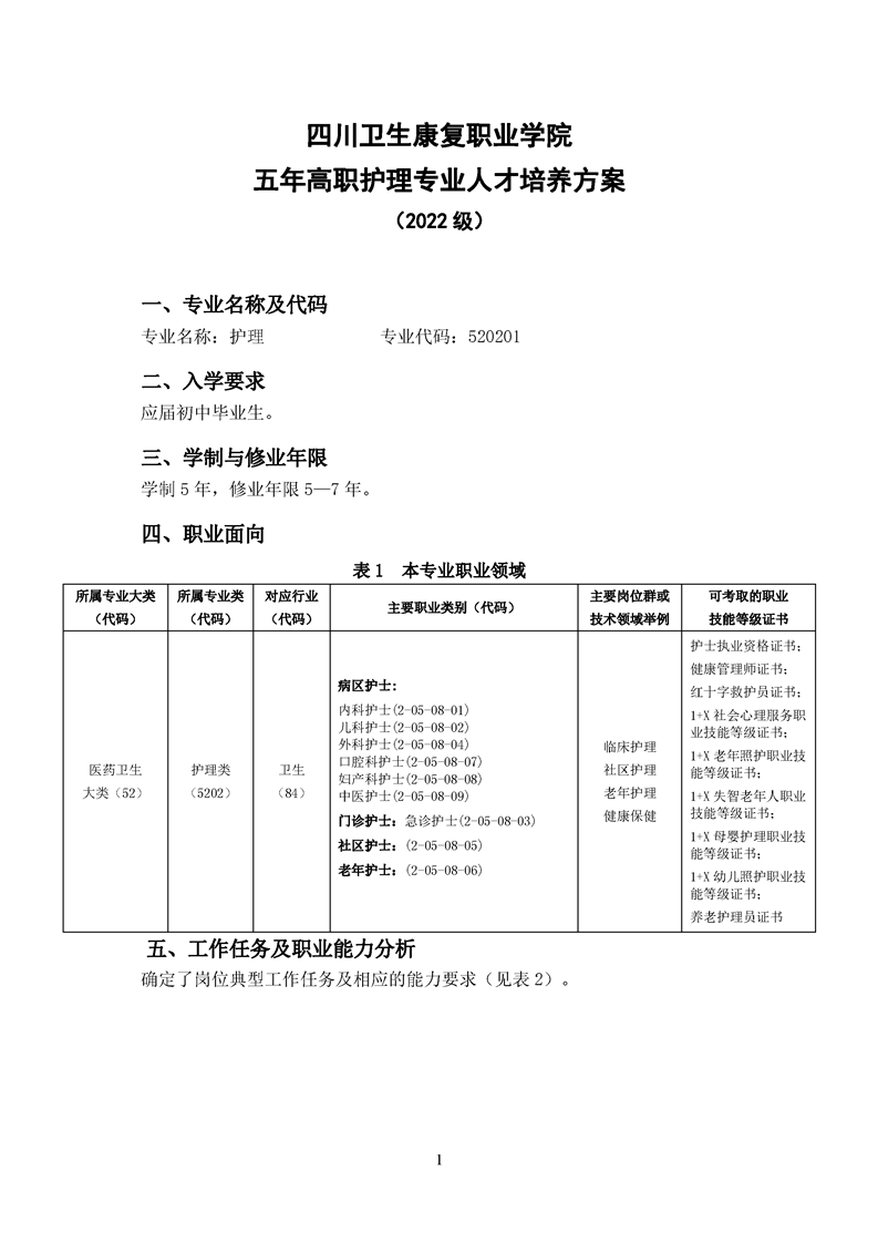 五年高职护理专业人才培养方案(2022级)