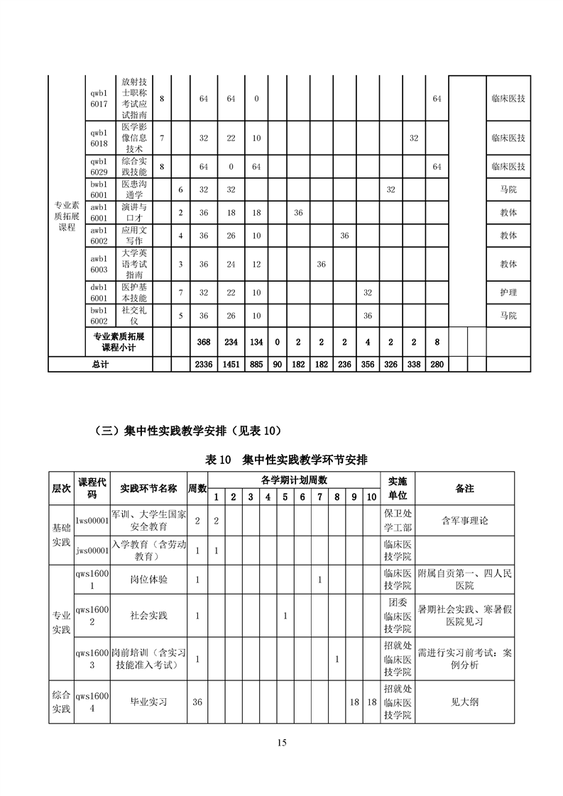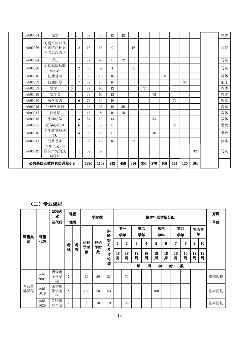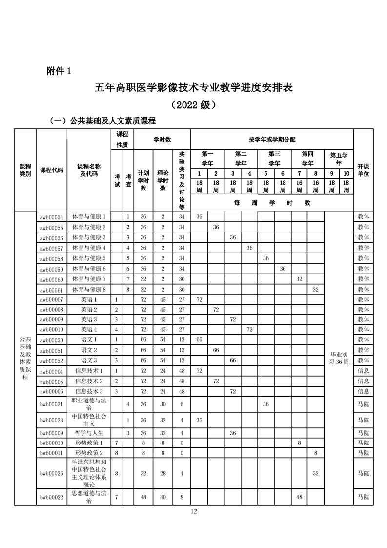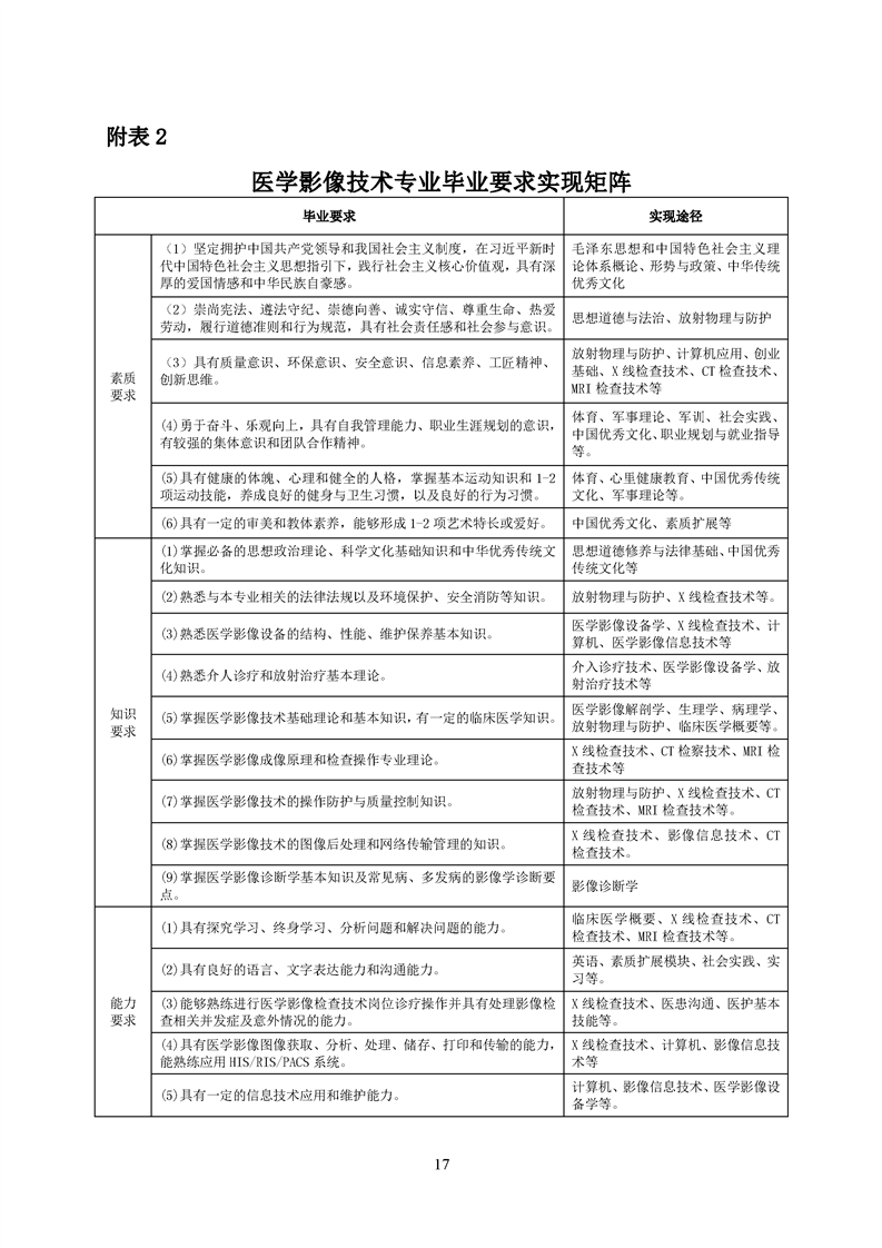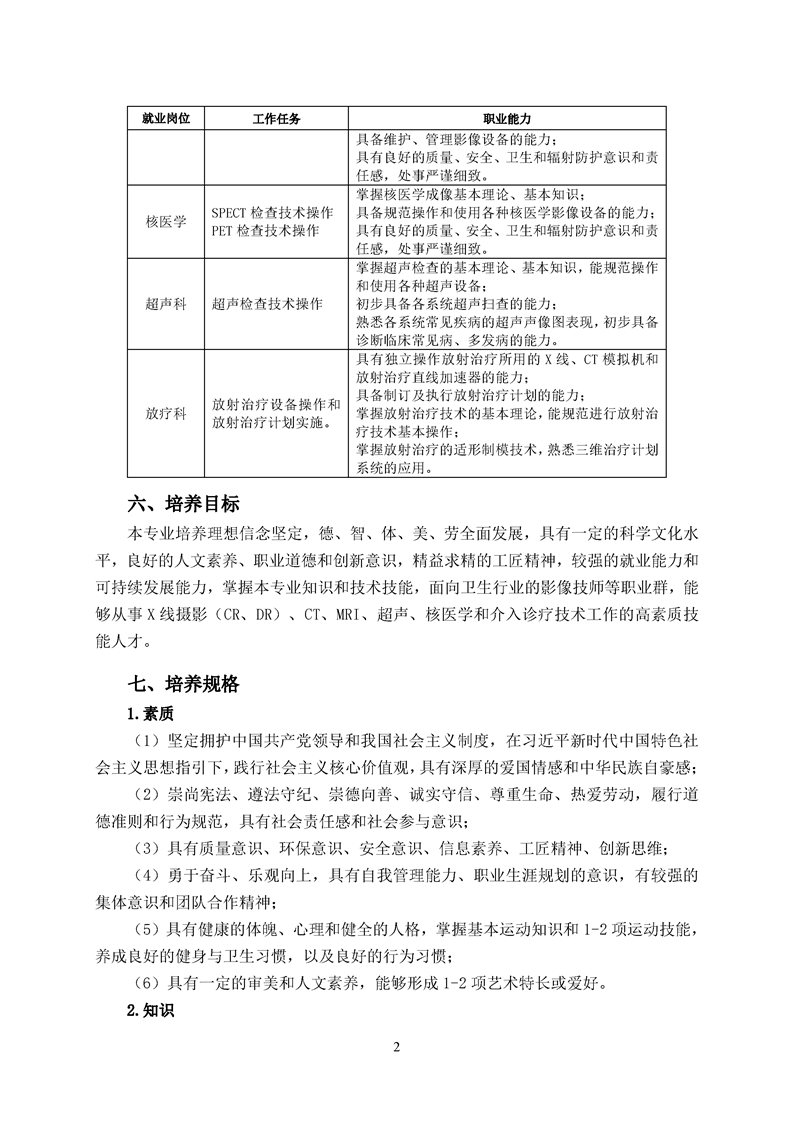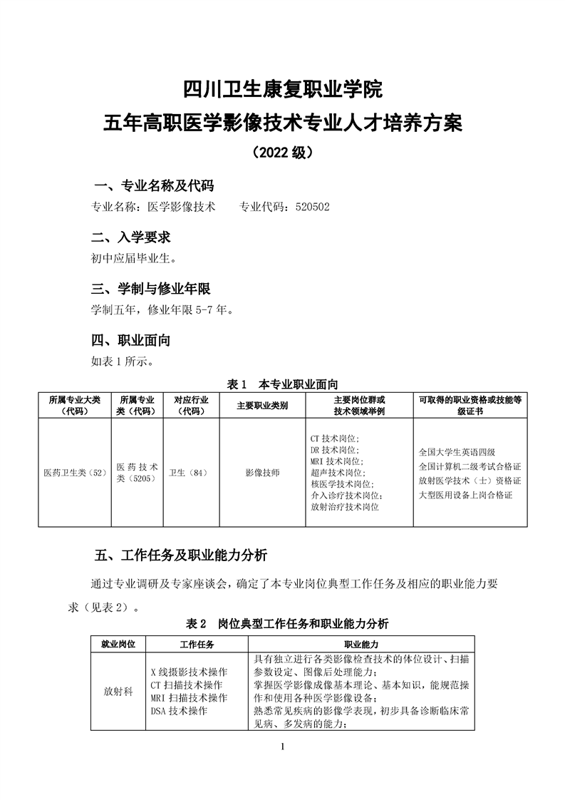 五年高职医学影像技术专业人才培养方案(2022级)