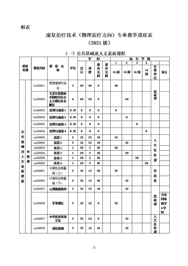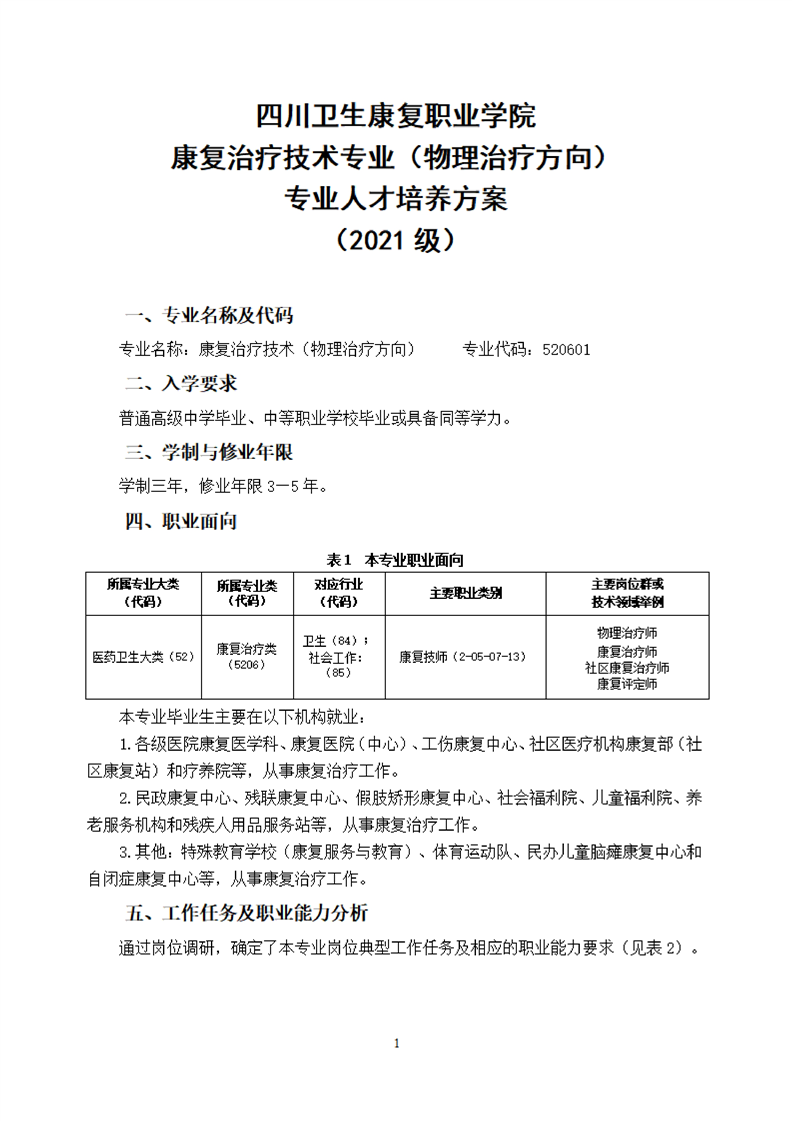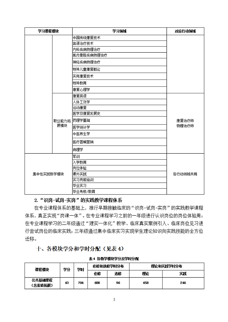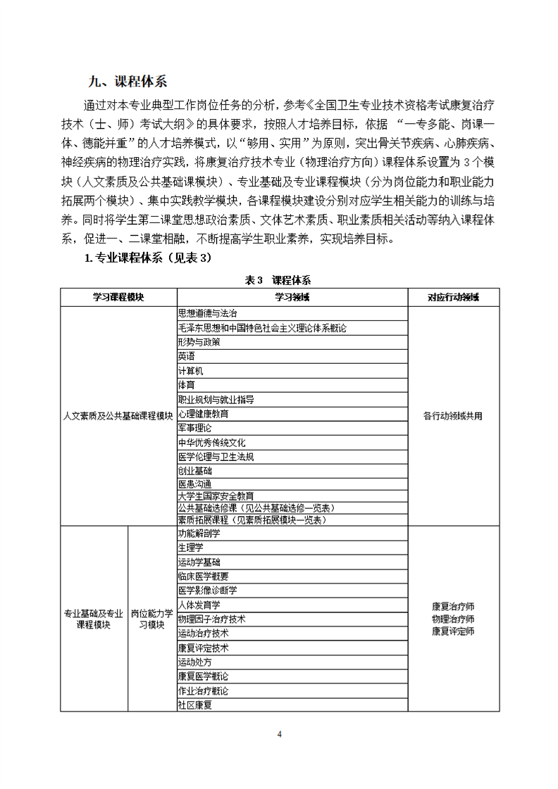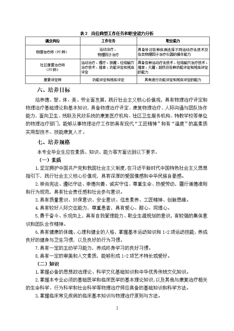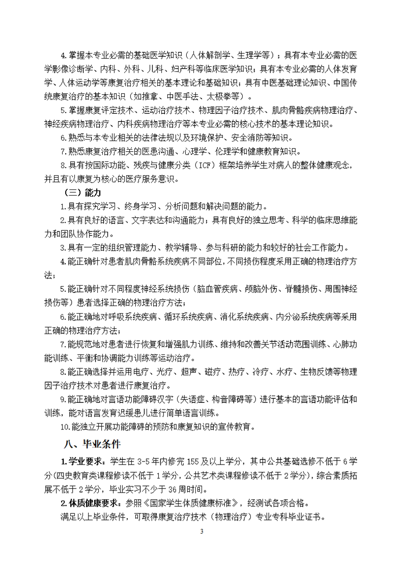 KY开元集团官网康复治疗技术专业(物理治疗方向)专业人才培养方案(2021级)