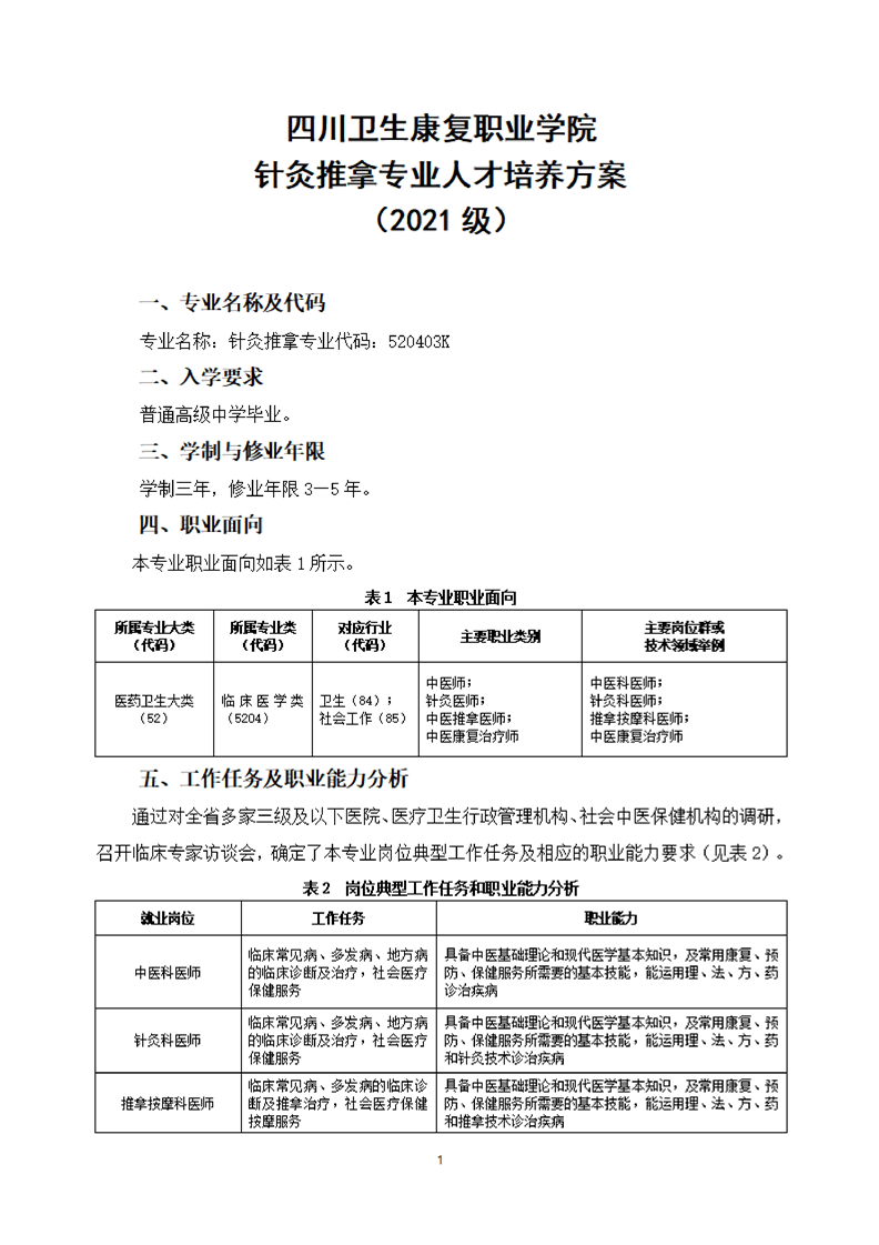 KY开元集团官网针灸推拿专业人才培养方案(2021级)
