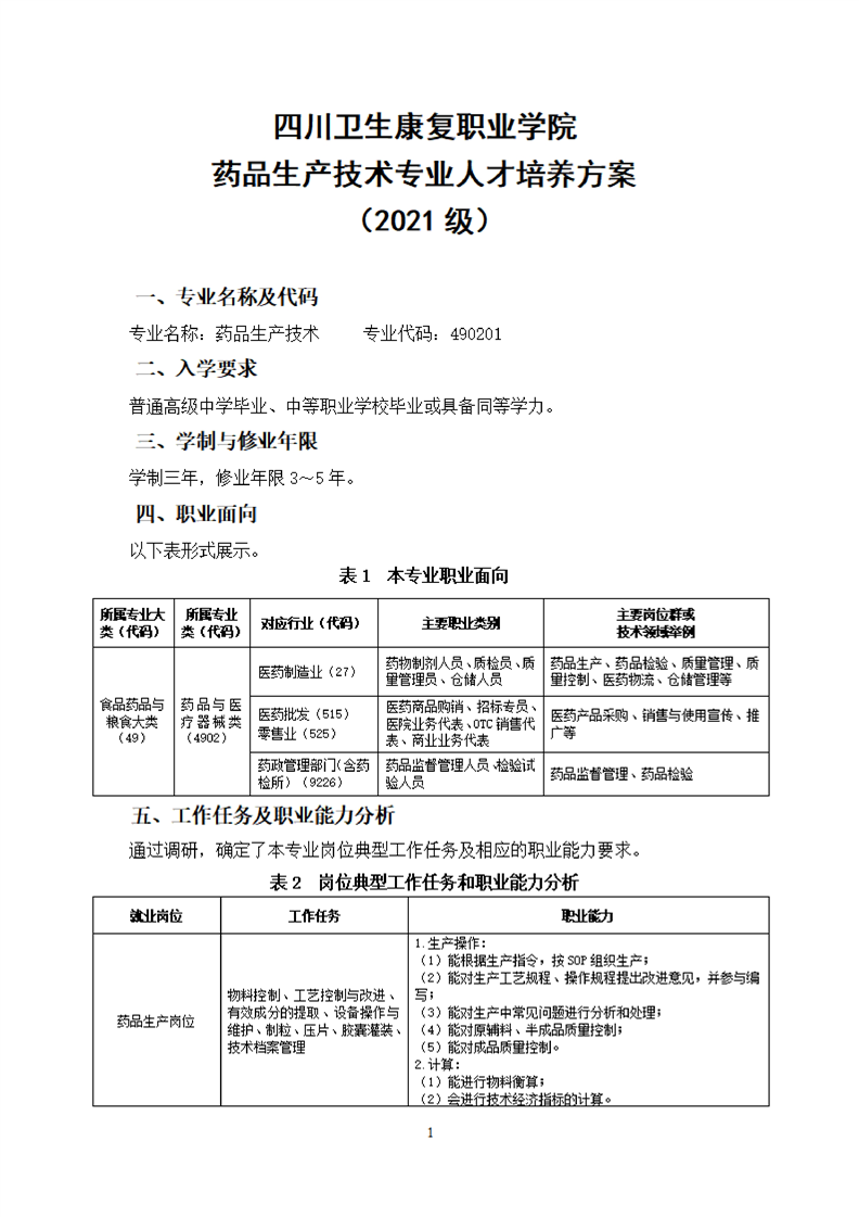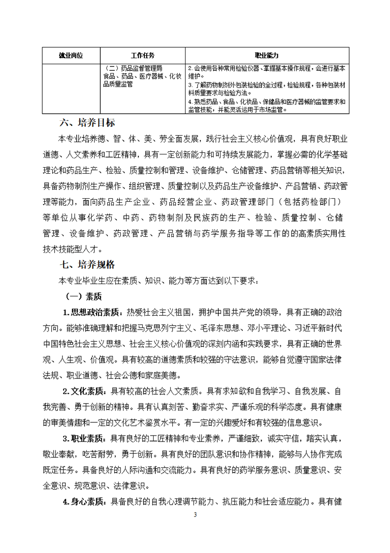 KY开元集团官网药品生产技术专业人才培养方案(2021级)