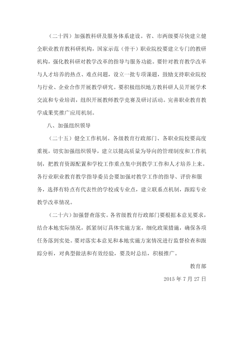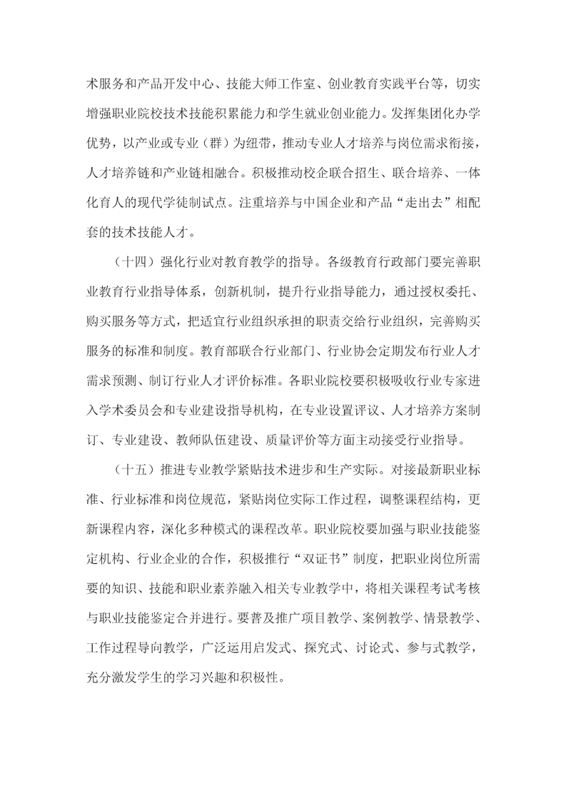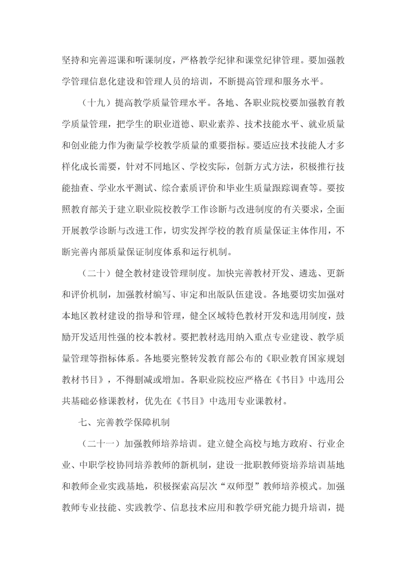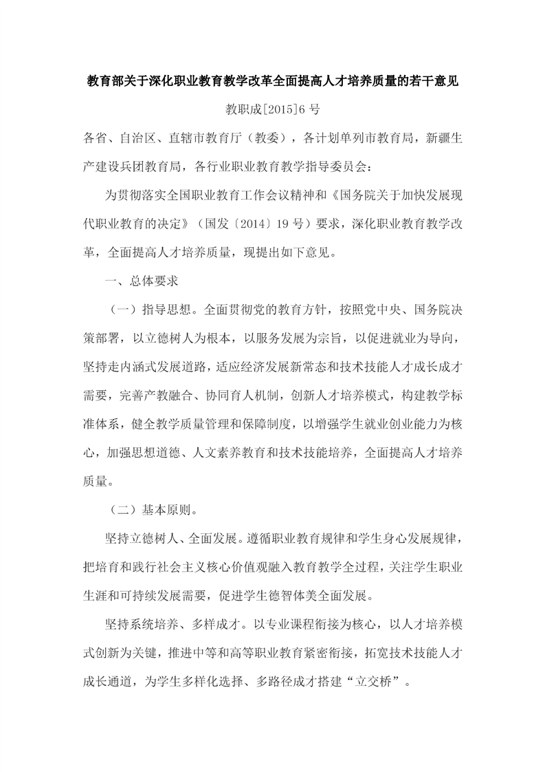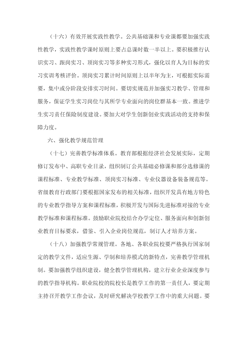 教育部关于深化职业教育教学改革全面提高人才培养质量的若干意见