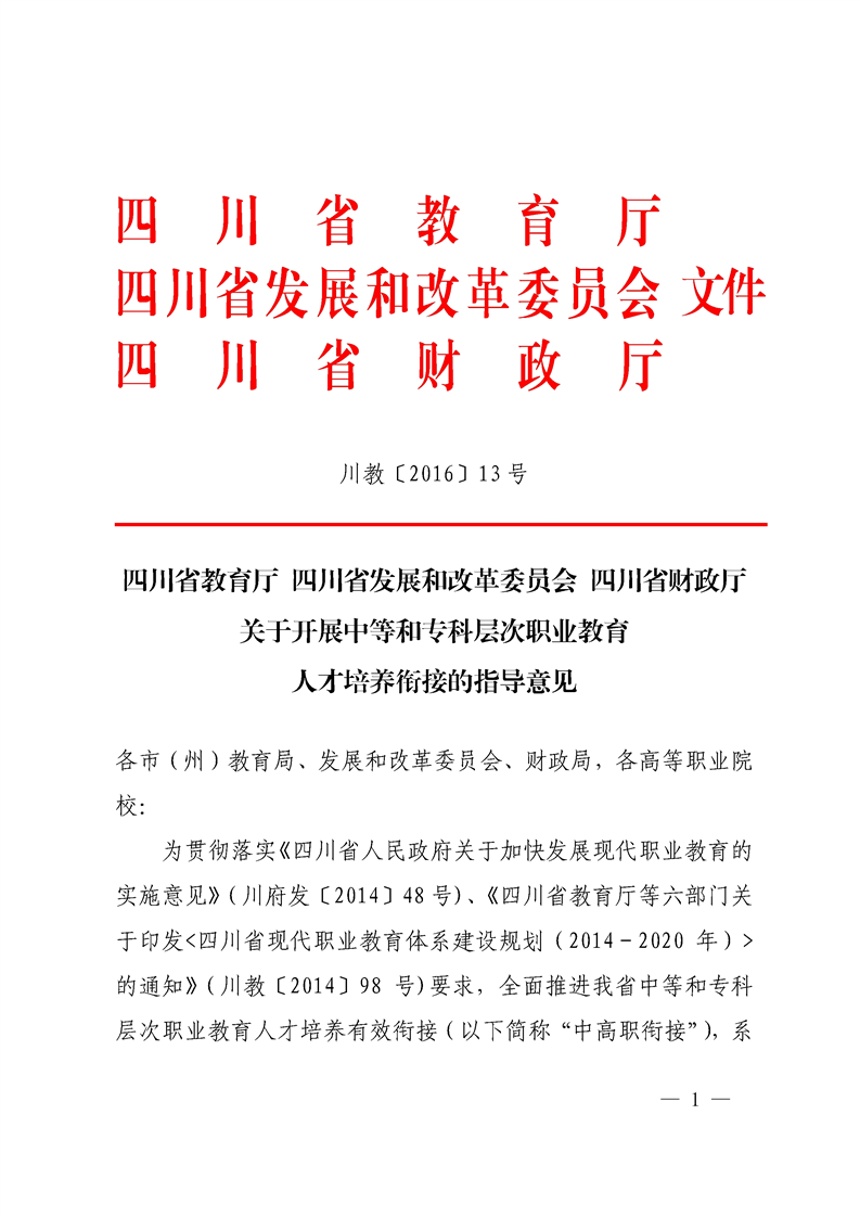 关于开展中等和专科层次职业教育人才培养衔接的指导意见