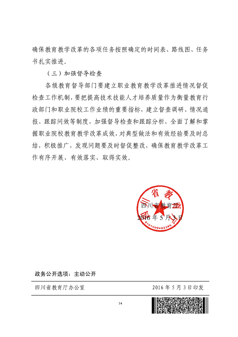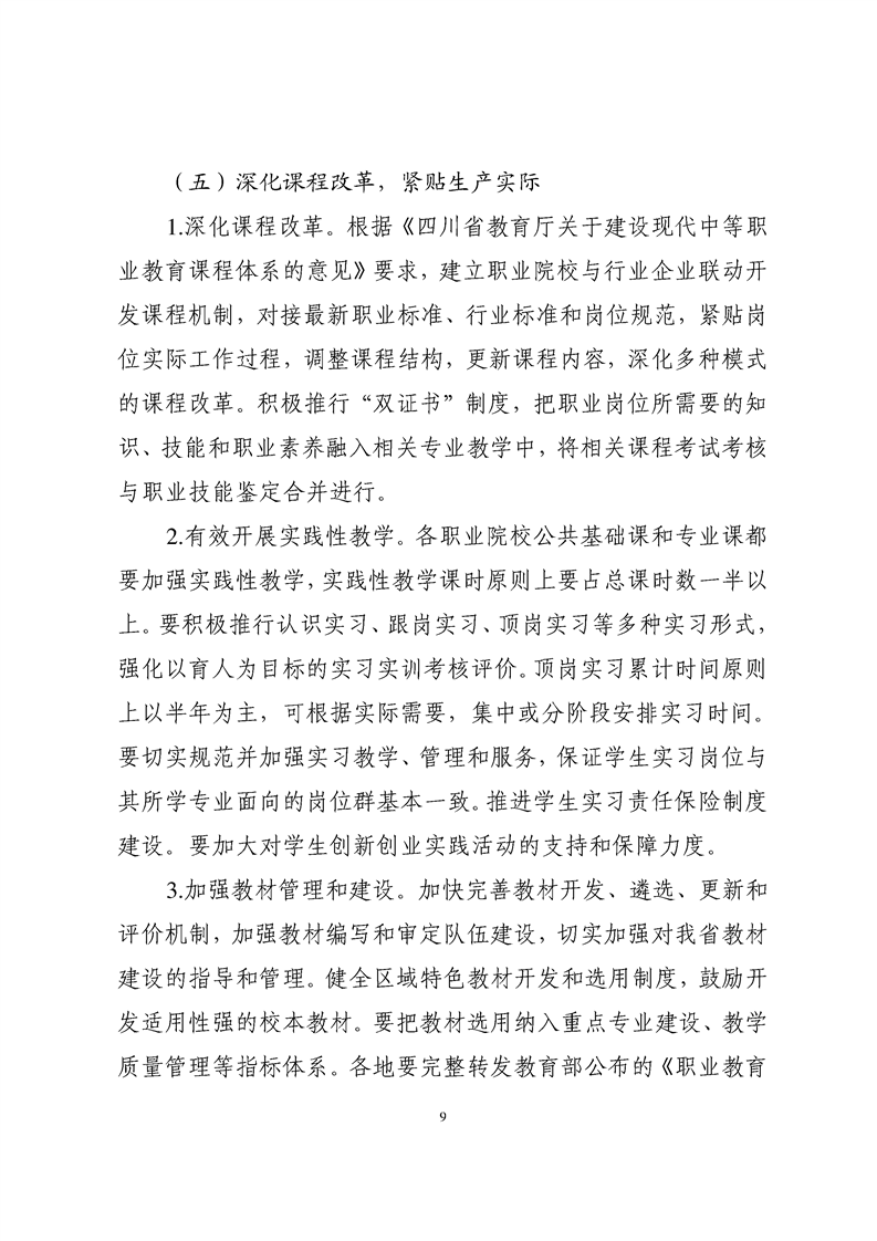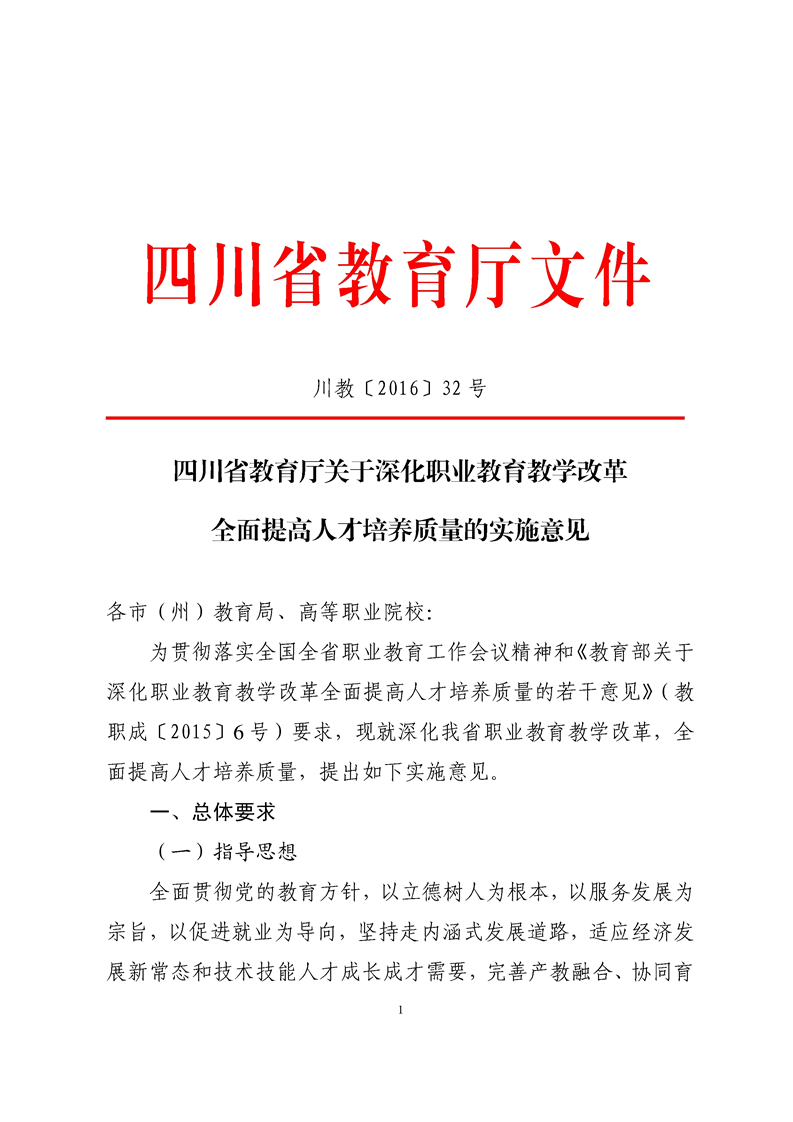 四川省教育厅关于深化职业教育教学改革全面提高人才培养质量的实施意见