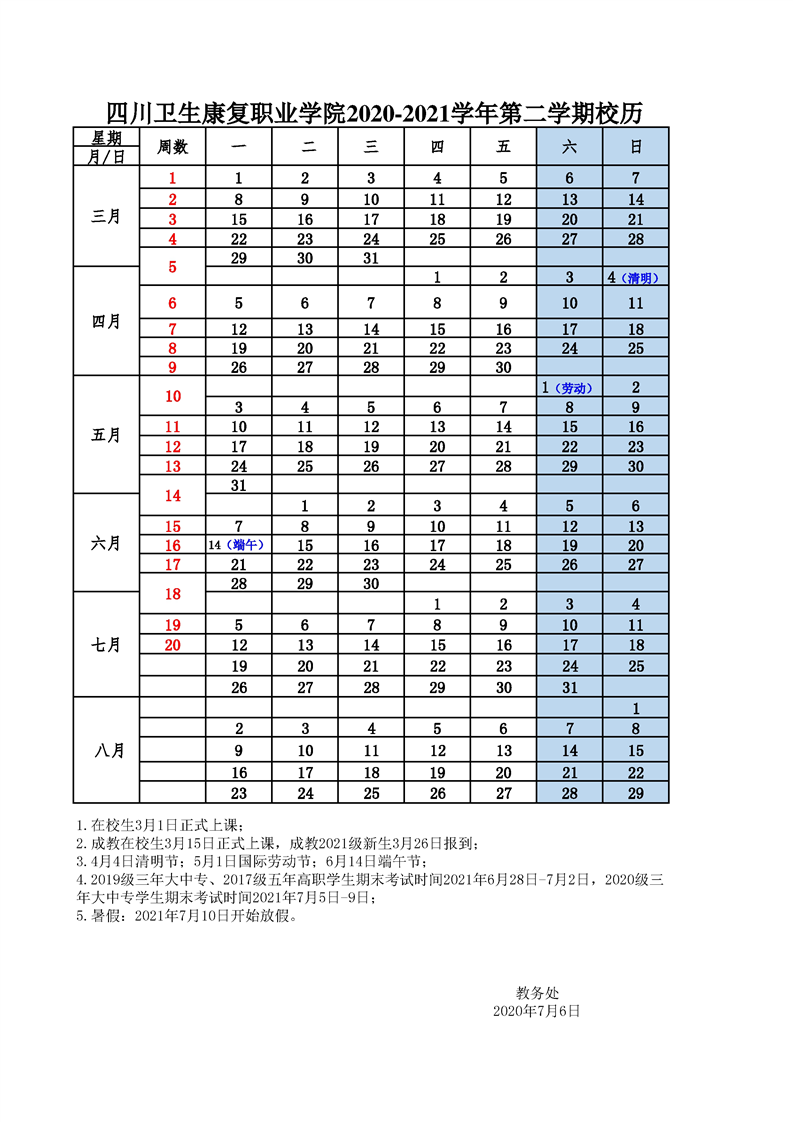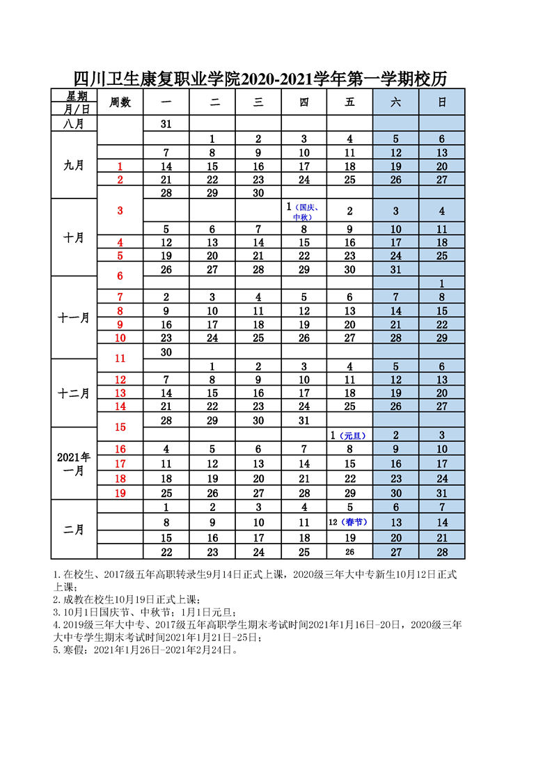 KY开元集团官网2020-2021学年校历