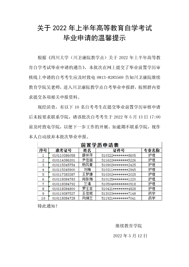 关于2022年上半年高等教育自学考试毕业申请的温馨提示