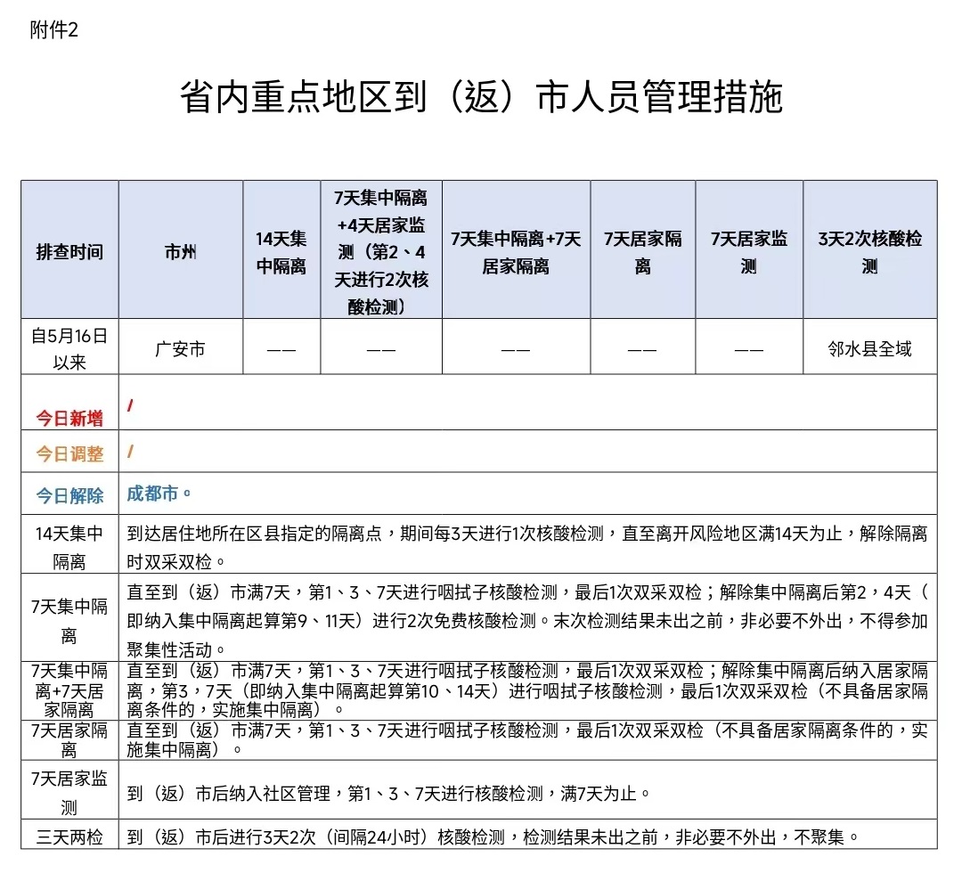 四川省自贡市关于省内重点地区到(返)市人员管理措施(2022.5.31)