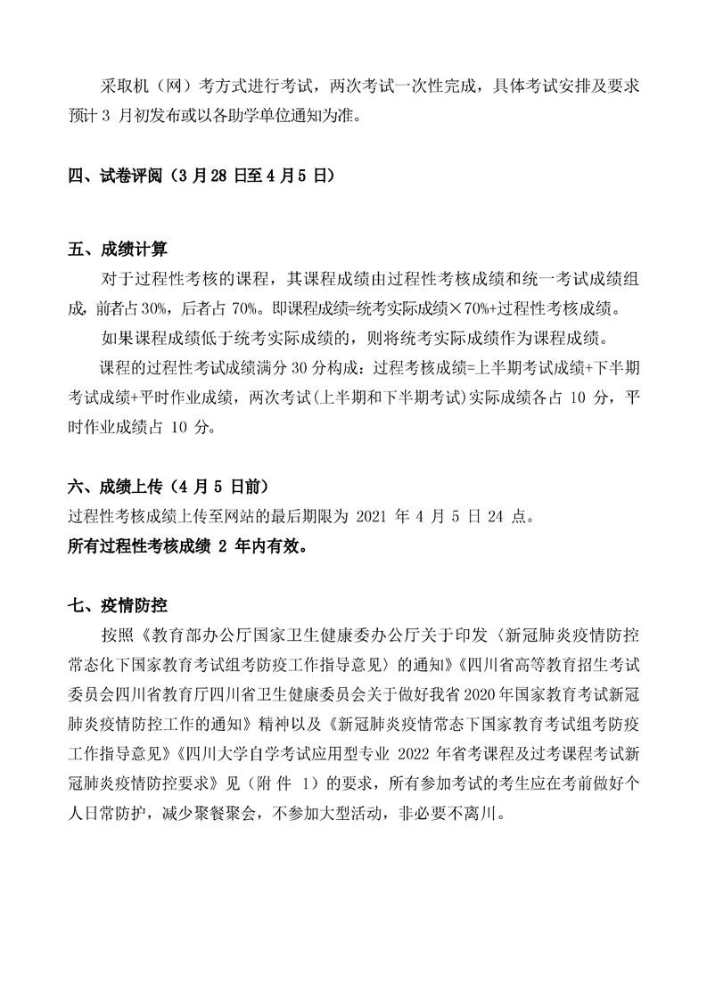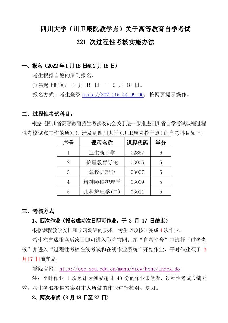 四川大学(川卫康院教学点)关于高等教育自学考试221 次过程性考核实施办法
