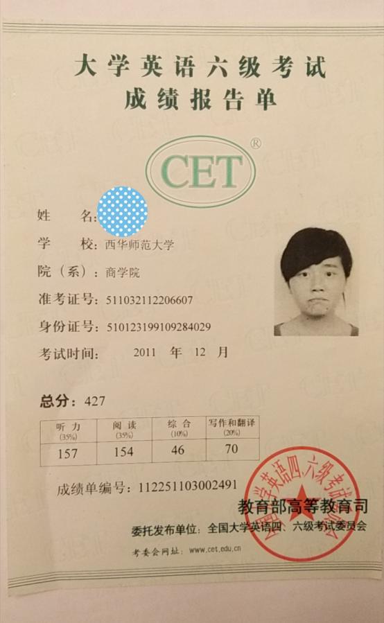 (3)全国大学英语四、六级考试证书复印件;