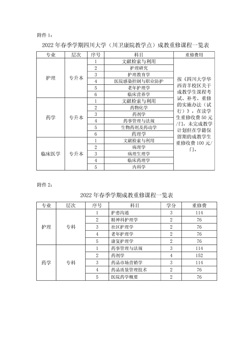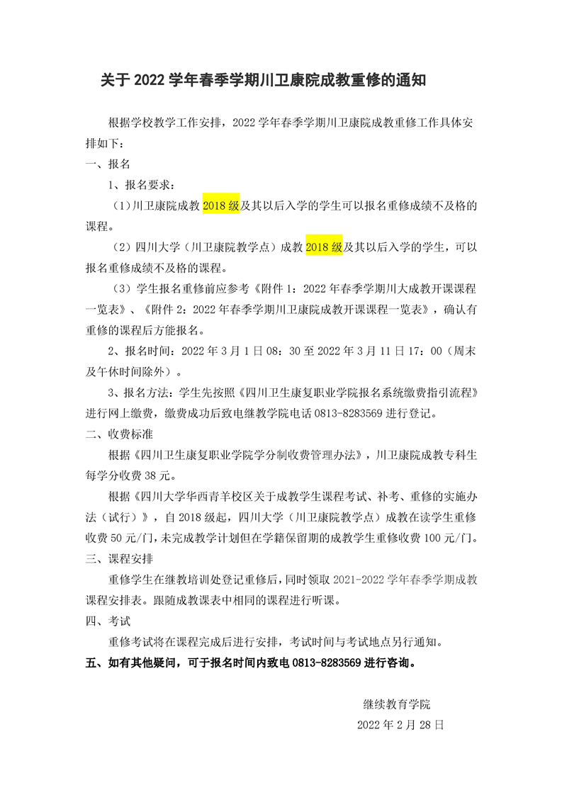 关于2022年春季学期成教重修的通知