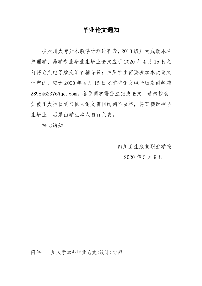 关于2020届川大成教本科学生上交毕业论文的通知