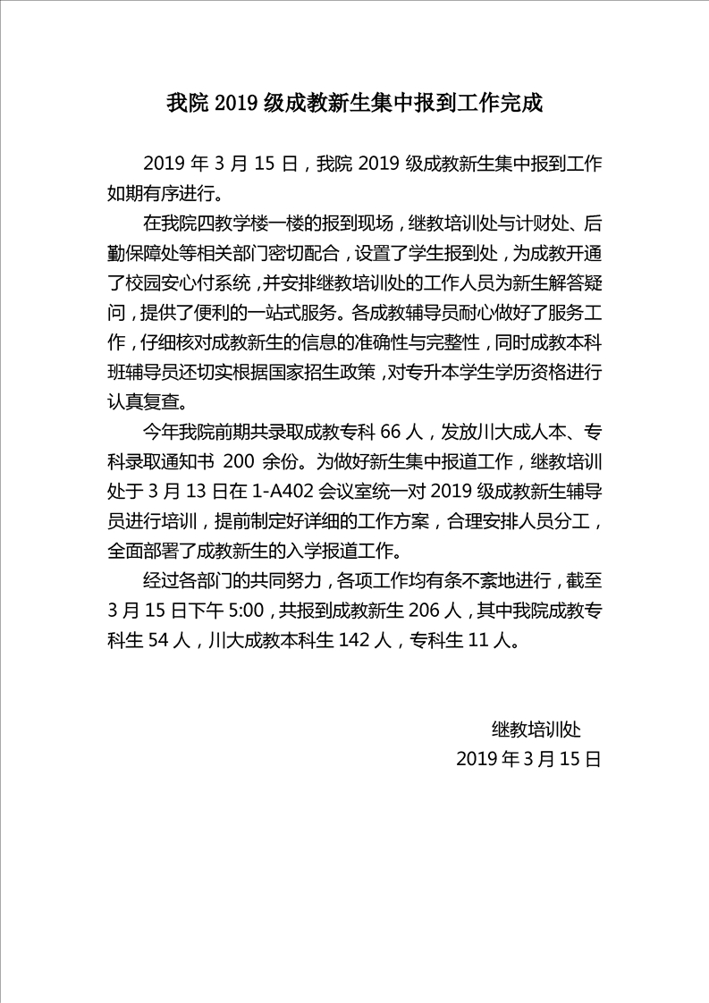 开元官网2019级成教新生集中报到工作完成