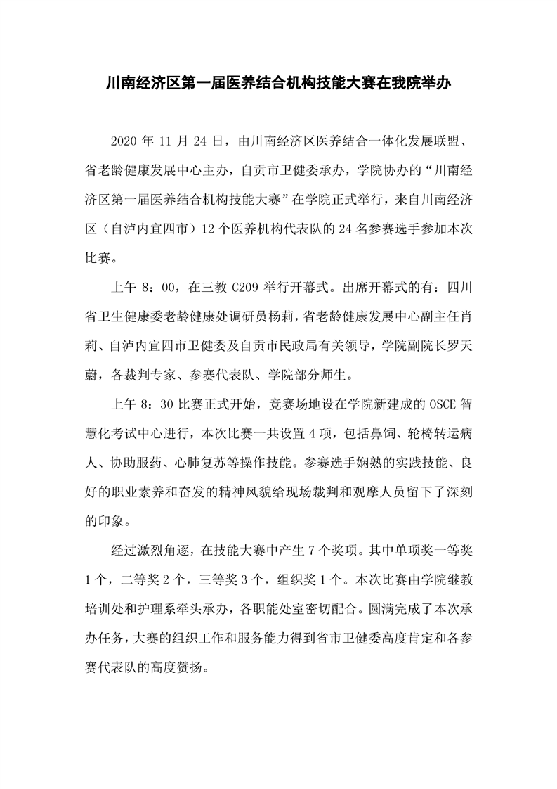 川南经济区第一届医养结合机构技能大赛在开元官网举办