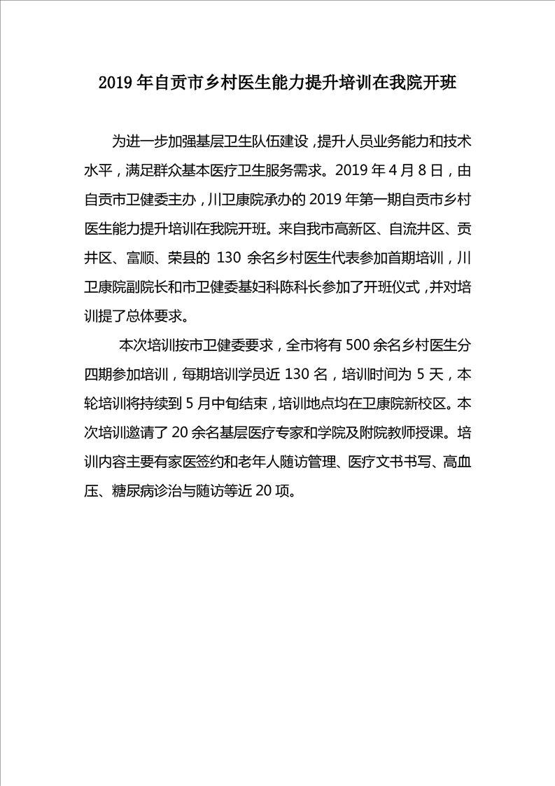 2019年自贡市乡村医生能力提升培训在开元官网开班