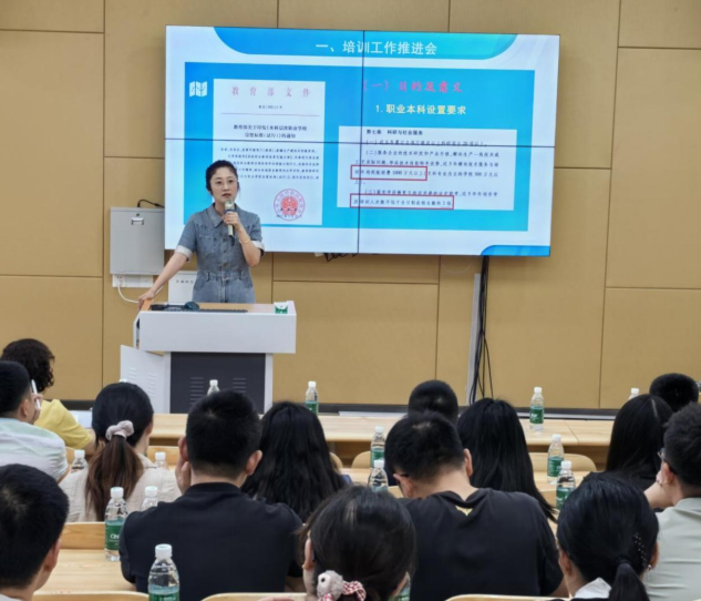 会议聚焦高质量就业核心目标,王庆副院长阐述了人社培训的战略意义,回顾了2024年工作成效,并对2025年任务进行详细安排。罗天蔚副校长就促进学生高质量就业,着重强调要“宣讲好”政策机遇、“组织好”培训实施、“管理好”教学过程、“加强”评价考核,要求老师们发挥“指路明灯”作用,将职业培训融入育人实践。继续教育学院江蓓、李凤老师随后就系统操作与报名流程进行了专题业务培训,提升教师实操能力。