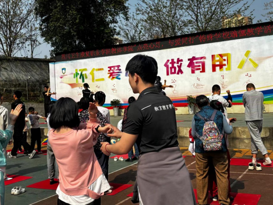 3月27日上午,KY开元集团官网教育体育学院师生融合党支部、教育体育学院团总支组织学生志愿者前往自贡特殊儿童学校进行雷锋月志愿活动。为特殊儿童学校学生们普及有氧健身操以及瑜伽,并带领大家进行基本的练习。