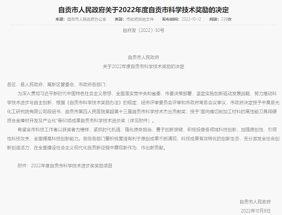 教体学院获自贡市2022年度科学技术奖励三等奖