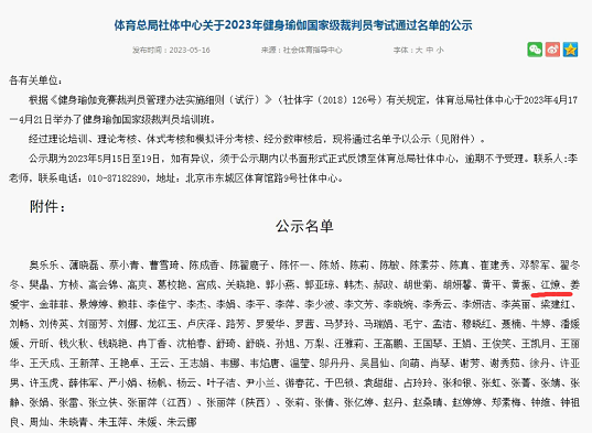 5月16日,国家体育总局社体中心公布了健身瑜伽国家级裁判员人员名单,教育体育学院副院长江燎成功入选(全国仅132名),这是江燎继入选首批健身瑜伽国家级高级晋段官、国家级教练员、7段后的又一项国家级荣誉。据悉,截至目前四川省同时获得以上四项荣誉称号仅江燎一人。