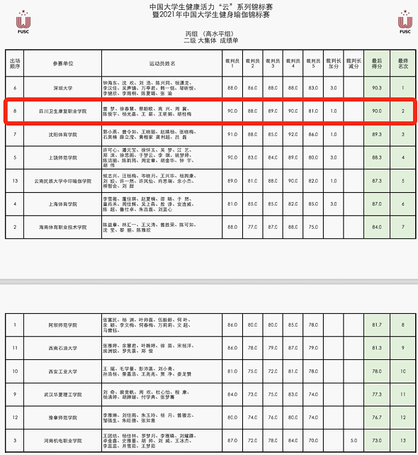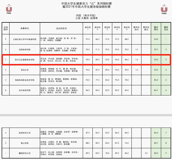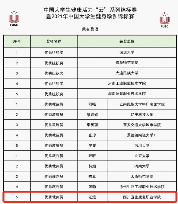 近日,由中国大学生体育协会主办的第16届中国大学生健康活力“云”系列大赛暨2021年中国大学生健身瑜伽锦标赛在线上举行。经过紧张激烈地角逐,开元官网休闲体育专业瑜伽专项学生从来自全国64所高校963名参赛选手中脱颖而出,斩获丙组(高水平组)二级大集体第二名、丙组(高水平组)三级大集体第三名,丙组(高水平组)一级大集体第三名的优异成绩,开元官网教师江燎获优秀裁判员奖。