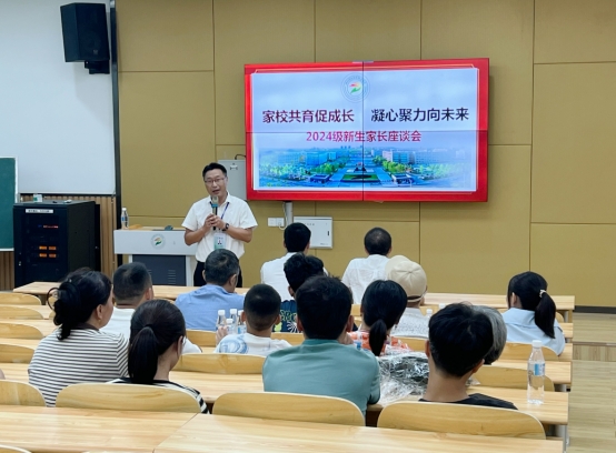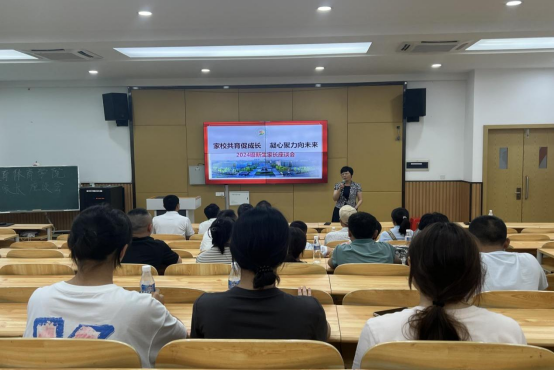 下午14:30,教育体育学院4-D301举行2024级新生家长座谈会。会上,学院党总支书记唐胜云从学校的校史校情、教育体育学院基本情况、专业的主要学习内容、教学环境、职业规划和学生管理六个方面进行了全面介绍,希望通过家校联动,携手助力学生成长成才。