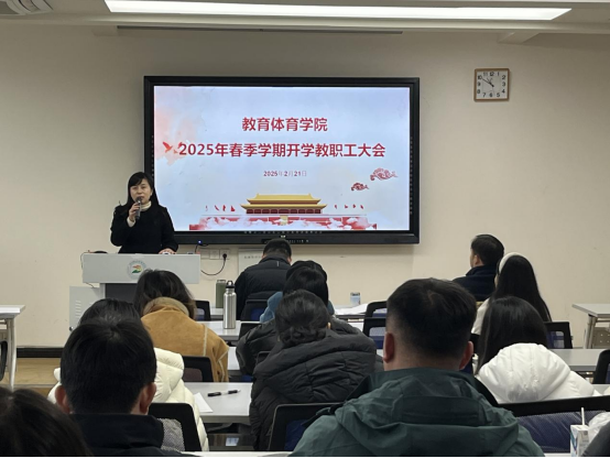2月21日,为更好地将“新双高”建设融入学院发展,教育体育学院召开2025年春季学期开学教职工会议。会上,学院领导班子成员对后续工作提出明确要求:一是要锚定目标,严格对照学校教育发展标准,以积极进取的态度,勇攀高峰;二是要树立终身学习理念,不断学习政策理论、前沿知识与专业技能,积极将人工智能融入教育教学,紧跟时代步伐;三是要实干担当,主动迎接职业教育新发展带来的机遇与挑战,勇挑实现教育现代化和高质量发展的重担。