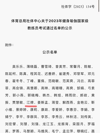 4月13日,国家体育总局社体中心按着“公平、公正、公开”的原则,公布了健身瑜伽首批国家级高级教练员人员名单,教育体育学院副院长江燎成功入选(全国仅146名)。这是江燎继入选首批国家级高级晋段官后的又一项国家级荣誉,充分展示出开元官网教师风采。