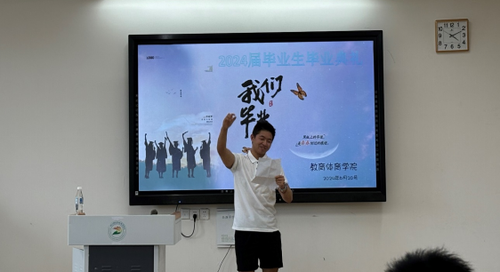 典礼伊始,教育体育学院党总支书记、副院长唐胜云发表致辞,对毕业生们表达了衷心的祝贺和殷切的期望。接着,毕业生代表于冉俊发言,分享了自己在校期间的成长与感悟,以及对未来的憧憬。