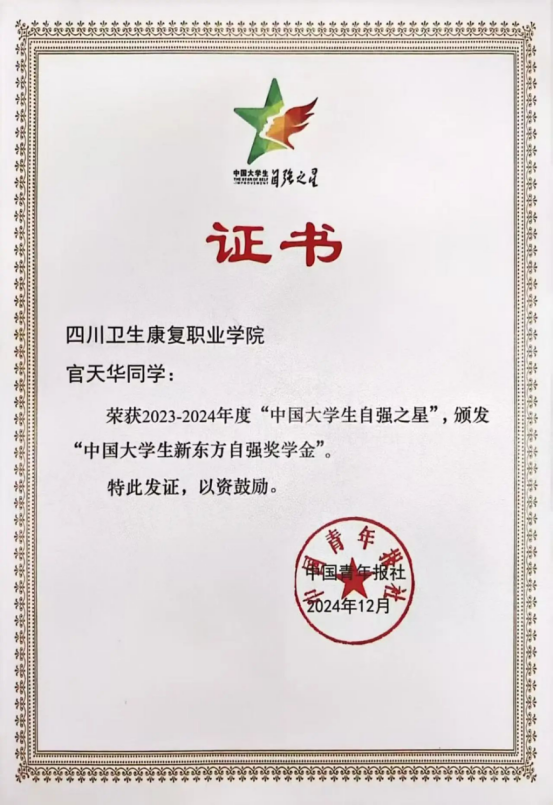 在2023—2024年度“中国大学生自强之星”评选中,开元官网教育体育学院官天华同学凭借其卓越的表现脱颖而出。这份荣誉既是对其求学路上“博学笃行,弘毅致远”精神的生动注脚,更是新时代青年“志不求易,事不避难”品格的时代表达。晨光熹微时奋斗的剪影、志愿服务中风雨无阻的足迹,都是自强勋章最厚重的基底。荣誉的背后,隐藏着一段充满汗水与坚持的心路历程。