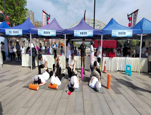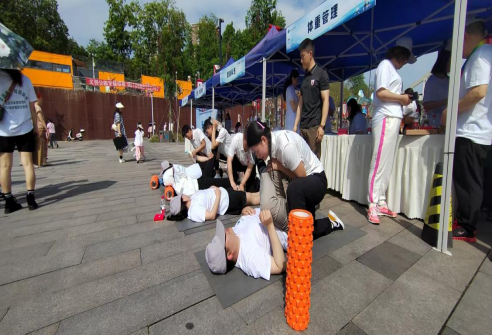 科学健身指导区由学院运动医学专家+专业健身教练团队组成,他们凭借丰富的专业知识和实践经验,为参与者提供了一系列专业且贴心的服务。在运动防护讲解环节,详细介绍运动过程中可能遇到的风险及应对方法;健步姿势示范,帮助参与者掌握正确的行走和跑步姿势,减少运动损伤;个性化拉伸指导,根据每个人的身体状况制定专属拉伸方案。此外,特别设立的赛后恢复专区备受瞩目,这里提供的筋膜松解治疗与动态拉伸服务,有效缓解运动后的肌肉疲劳,助力形成科学运动的完整闭环。