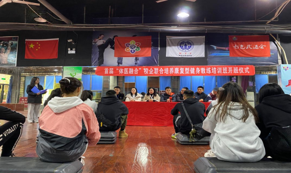 2021年3月21日下午,第一届“体医融合”校企联合培养康复型健身教练培训班于南湖健身中心举行开班仪式。康复系副主任谭惠、辅导员刘斯吉,南湖健身中心何朦曦、雷玺 、余宏伟、蒲丽娟老师及“运动康复”方向班的32名同学参加仪式,“运动康复”方向班能顺利开班,得到了学校领导的高度重视,获得了南湖健身中心的大力支持。