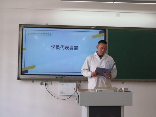 最后学生代表郭千禧同学上台发言,郭千禧同学代表全体学员庄严表态:我们一定要珍惜这次学习良机,静心学习,潜心研究,用心感悟,认真听好每一次培训所讲内容,主动参与讨论。“问渠哪得清如许,为有源头活水来”我们带着期待而来,我们一定满载硕果而归!