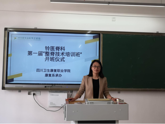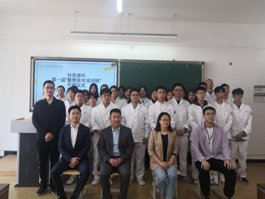 2021年3月13日下午,铃医脊科第一届“整脊技术培训班”在1教A306举行开班仪式。到场的嘉宾有:康复系主任孙天聪、玲医脊科创始人南贺,铃医脊科医师尹人前,康复系辅导员刘斯吉。此次培训得到了学校各领导的充分重视,也获得了铃医脊科企业的热心支持与配合。