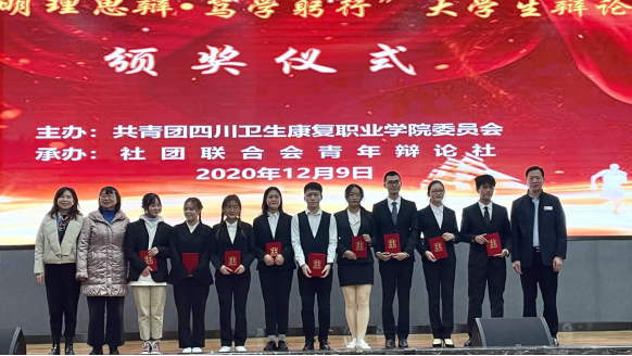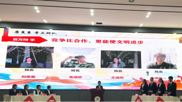 代表康复系出战的是“奇正辩队”,这群身穿正装神采飞扬的辩手们,分别是来自19级康复7班刘荣英、王语然同学,19级康复2班毛浩欢以及20级康复1班徐庆一同学,他们带着敏锐的思维、团结一致的合作精神进行了一场智慧与才思的交锋、激情与友情的碰撞。