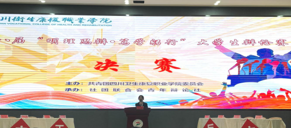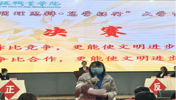 主持人宣布“明理思辨·笃学躬行”校园辩论赛正式开始。历时一个多月的激烈角逐,最终进入总决赛的队伍分别是康复系“奇正辩队”和护理系“三线rapper在线念稿队”,眼看一场精彩的辩论会就要拉开帷幕,谁会成为笑到最后的队伍呢?拭目以待吧 !