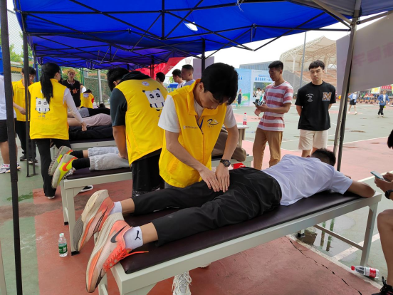 还有超暖心赛后服务——同学们发挥康复专业专业优势帮返场运动员提供推拿按摩,