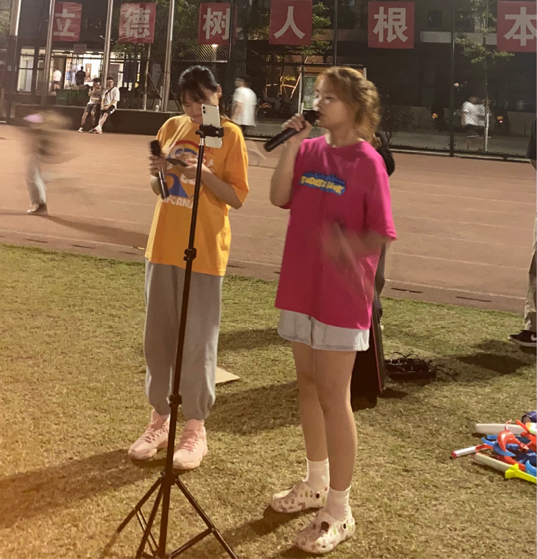 活动采取自由演唱的形式,想唱就唱,同学们可以唱给自己喜欢的人听,一起在歌声中表达自我,舒缓心情,分享友谊、欢乐和喜悦,时间在不知不觉中流淌,恰如青春的消逝一般......不觉活动已临近尾声。