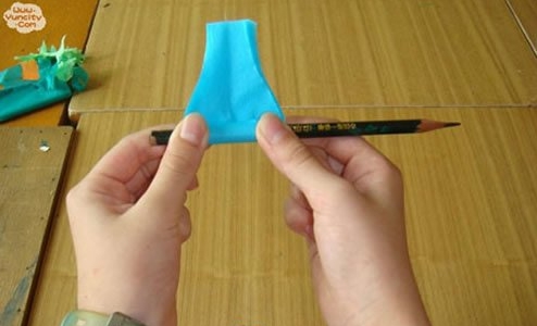 第四步:用笔把花瓣卷一下,让花瓣呈现自然卷曲。把两头用力在桌面上压一下将花瓣打开,向两侧拉伸一下。花瓣出来了!
