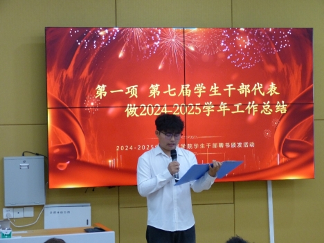 大会在全体与会者的热烈掌声中隆重启幕。第七届学生干部代表鲁鑫作年度工作报告,通过回顾一学年的工作成果,展现了组织在思想建设、项目创新、服务成效等方面取得的突破性进展。他特别强调,新一届干部应秉持"感恩·担当·创新"三大核心素养,在传承中实现阶梯式、跨越式发展。