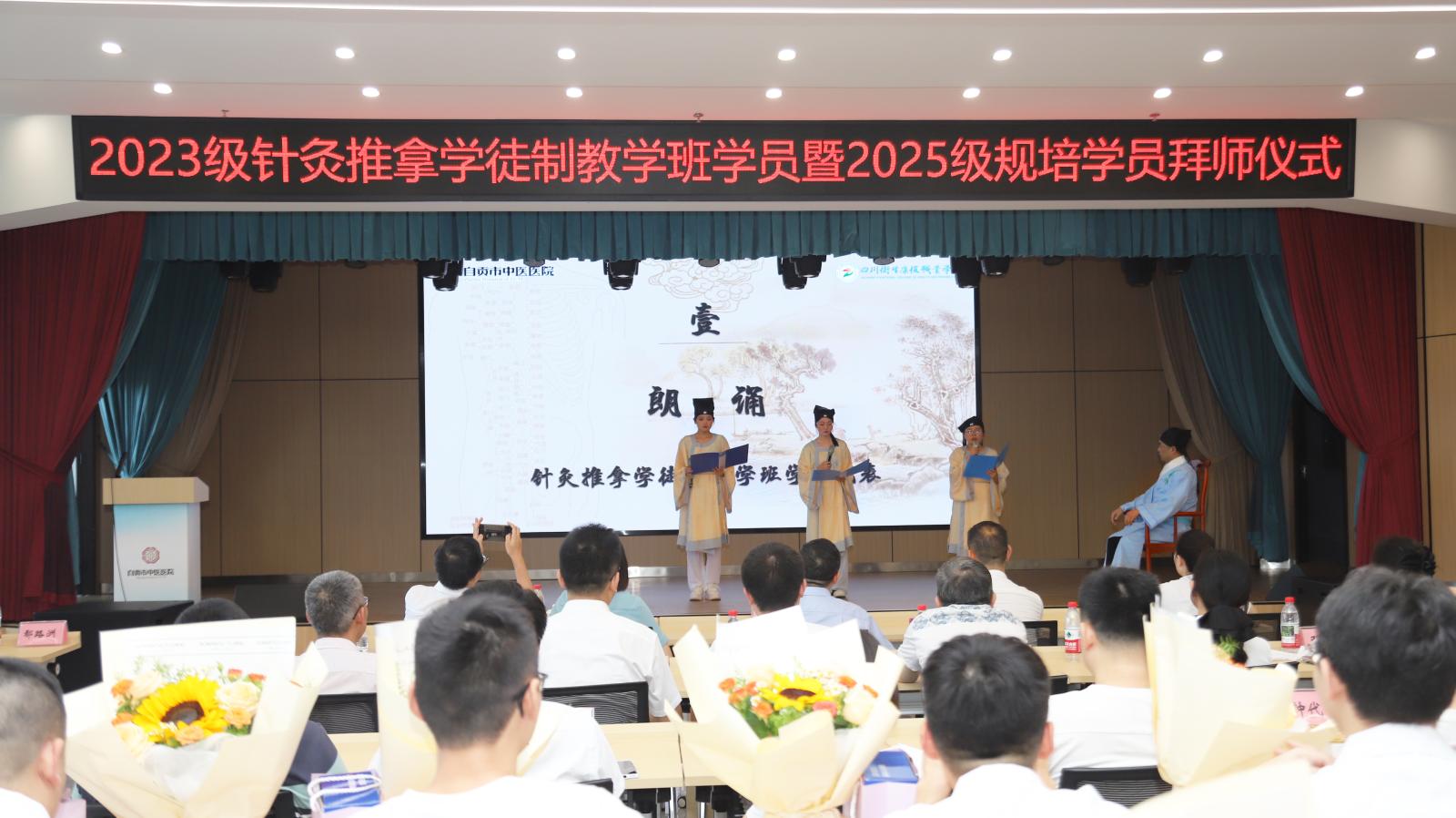 仪式在针灸推拿学徒制班学员代表的深情朗诵中拉开序幕,抒发了学子们传承中医、投身临床的坚定志向。