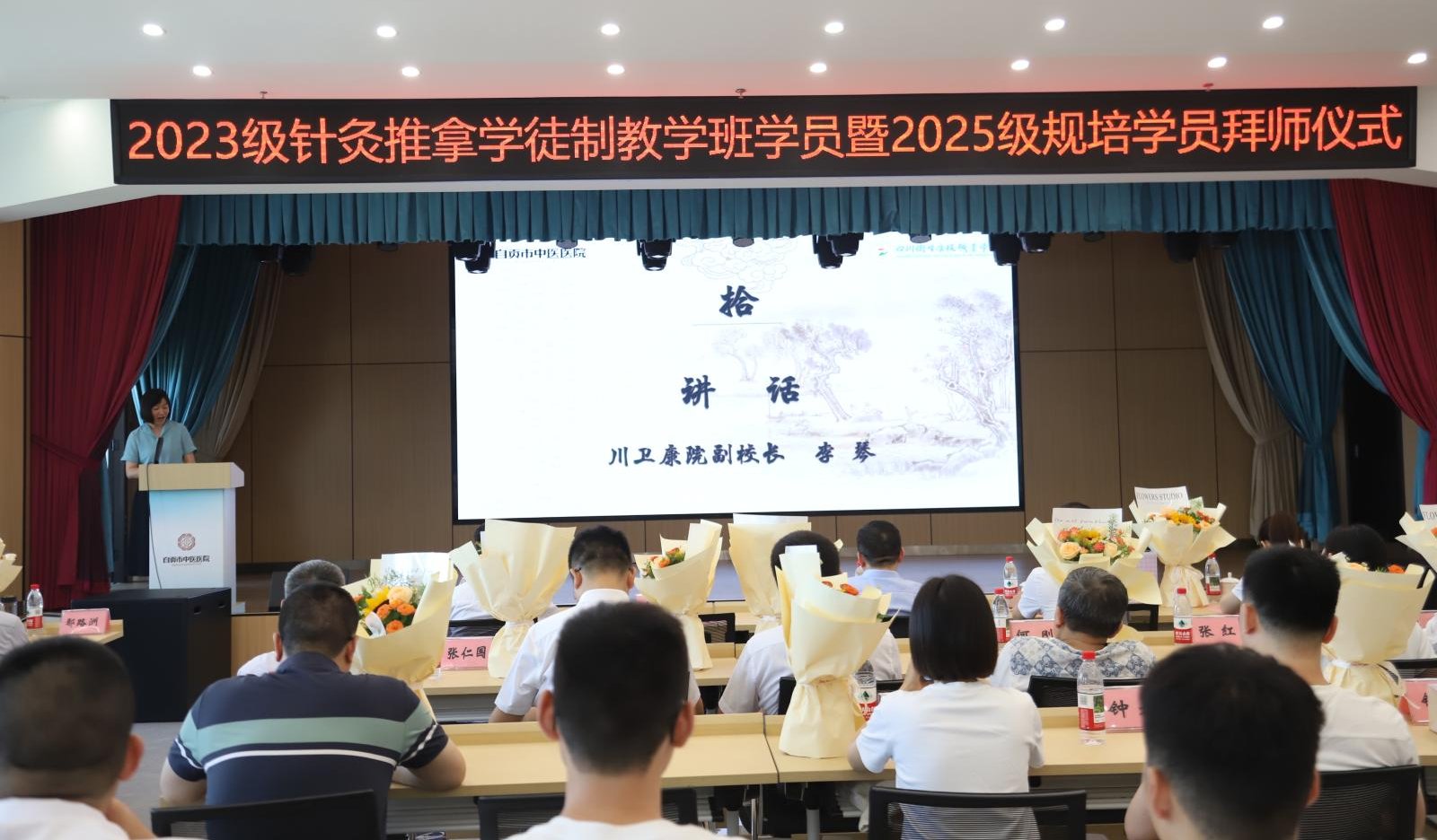 KY开元集团官网副校长李琴致辞,衷心感谢自贡市中医医院,特别是申奎书记雷从杰副院长及全体师承老师的辛勤付出和无私奉献。她指出,针灸推拿学徒制班是校院紧密合作、精准对接行业需求、培养“理论+技能”双优人才的成功实践勉励学员们珍惜在临床一线学习的机会,虚心求教,早日成才,为服务“健康中国”建设贡献力量。