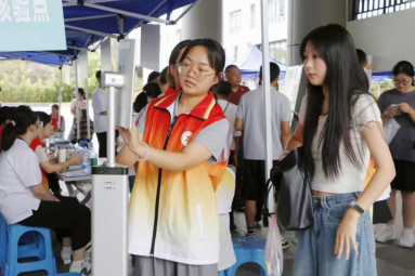 从高效准确的人脸信息录入,到顺畅便捷的一卡通办理,再到详尽的学生平安险讲解,志愿者们始终以极大的耐心和专业的服务,为新生铺设了一条便捷而安心的入学之路。他们用汗水与微笑,构筑起校园里第一道温暖的防线。