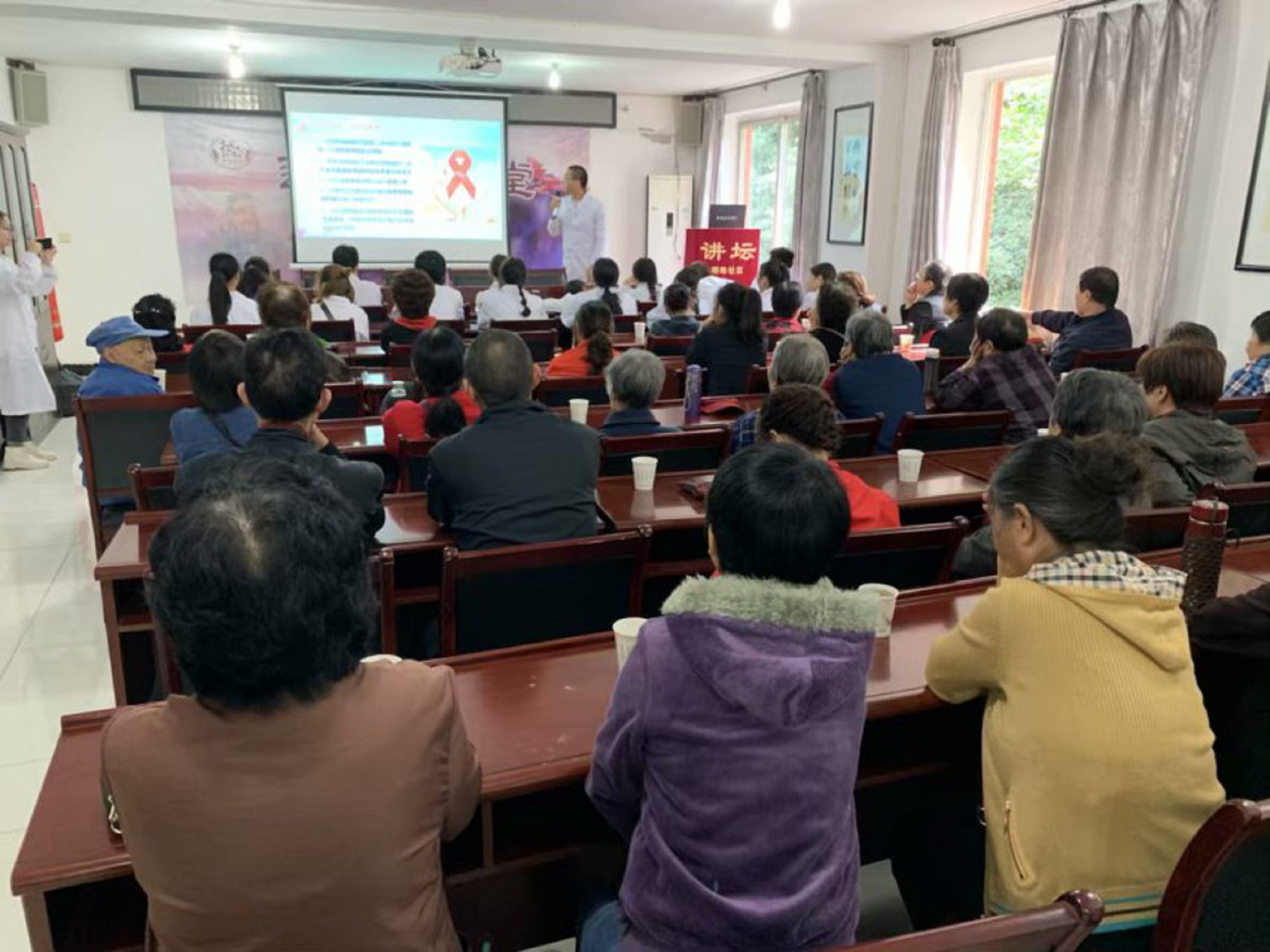 学生为社区居民进行艾滋病预防宣传
