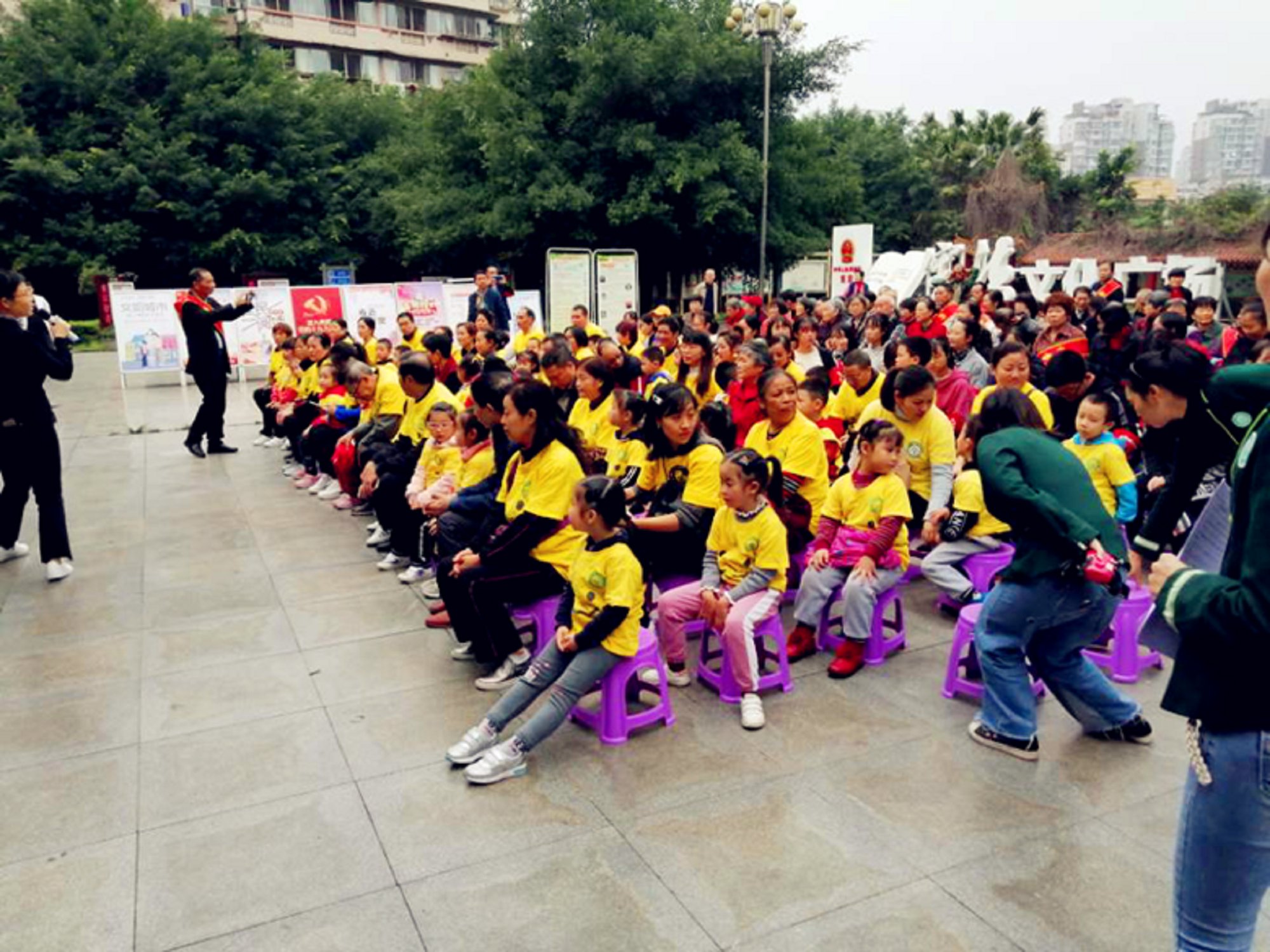 此次活动首先在“小手拉大手——文明传承我们有”的活动中展开。活动内容有两项:一是对社区内的家庭宣讲关于“双创活动”的内容;二是围绕如何创造自贡文明社区的知识问答。