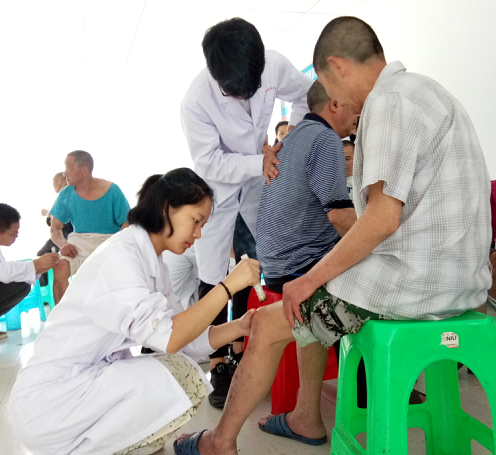 到达之后福利院负责人向大家简单介绍了福利院的一些基本情况。在那里有可以自己活动、自理的老人,也有一些常年因为疾病不得不卧床休养的老人。于是同学们分成两组,一组同学进入房间为卧床老人进行传统手法按摩,另一组同学则在赵老师的带领下在空旷的地方为老人们进推拿、艾灸、中频等治疗。在服务过程中,同学们耐心、热情的为每位老人解答他们提出的疑惑,也向他们讲解了一些疾病预防的相关知识,并告诉老人们日常生活中一些能够保护自己的注意事项。
