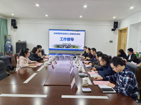 康复学院副院长李勇向督导组介绍了学校在支持省级康复专业技术人员规范化培训基地建设中的师资队伍、实践基地建设与培训管理等内容。随后督导组查阅了两期培训资料、实地考察了学校老年保健实训室和康复治疗技术相关实训室,对学校组织实施的康复专业技术人员规范化培训工作给予了充分肯定,同时提出了完善细节的相关工作建议。