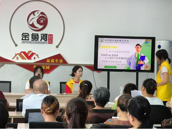 7月16日,KY开元集团官网康复学院暖阳科普先锋队实践团队走进自贡市贡井区金鱼河社区,开启第二期社区里的“康复小课堂”。队员们以“热射病防治”为主题,把夏季防暑知识与康复保健技巧打包送上,用专业科普为老年人撑起一把“健康遮阳伞”。